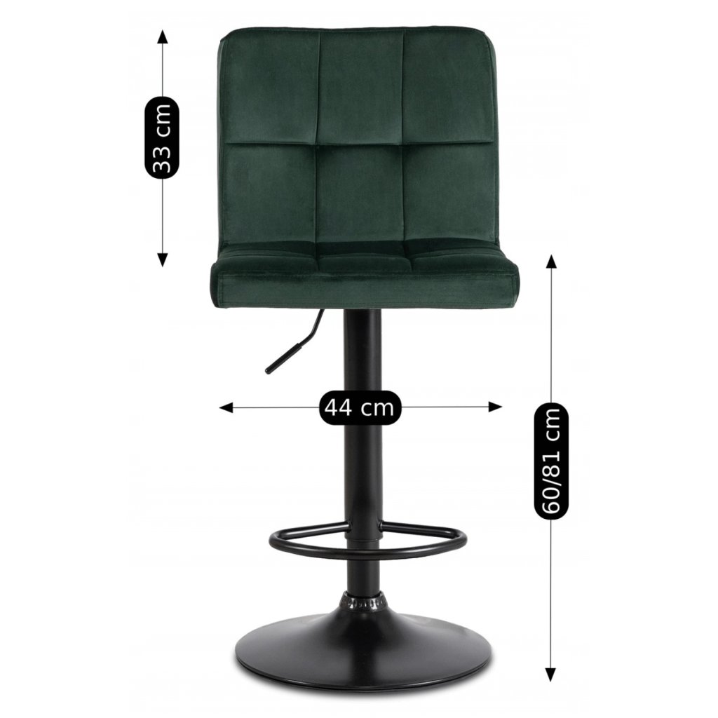Konštrukcia je z kovu v čiernom prevedení a nohy sú doplnené podnožkou, ktorá zvyšuje komfort. Sedadlo je otočné o 360° a má možnosť regulácie výšky v rozmedzí 60 – 81 cm, vďaka čomu je stolička flexibilná a prispôsobiteľná rôznym výškam pultu alebo baru.