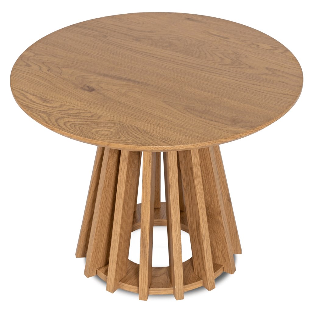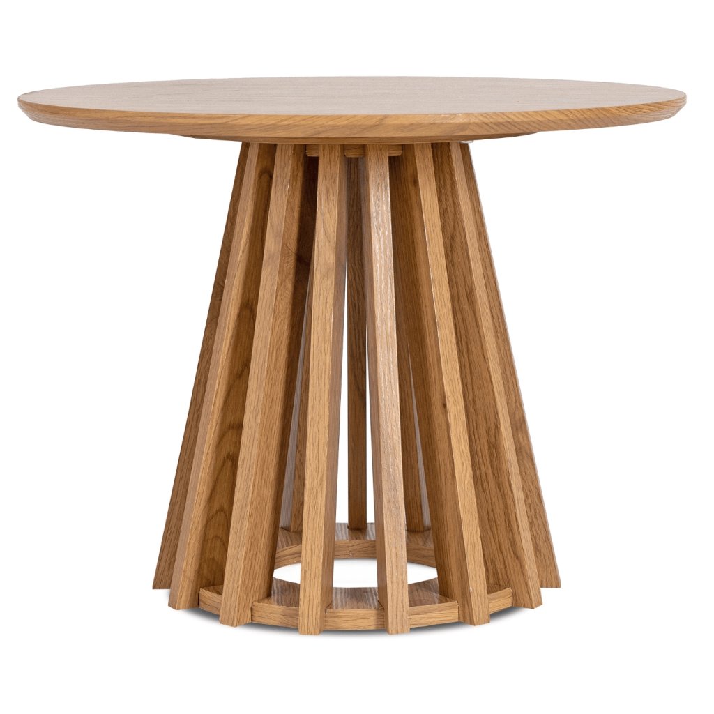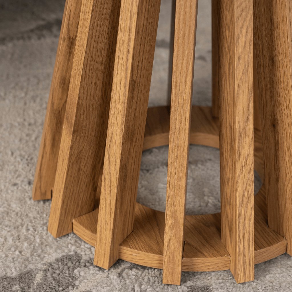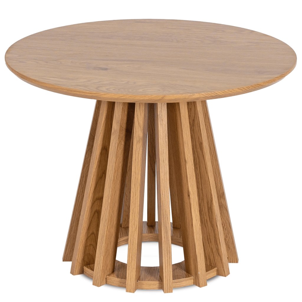 Stolík zaujme robustnou, no zároveň vzdušnou lamelovou podstavou, ktorá dodáva dizajnu originalitu aj stabilitu. Vďaka svojej jednoduchosti a výraznému tvaru je ideálnym doplnkom do obývacej izby, kde poslúži ako praktický aj štýlový prvok.