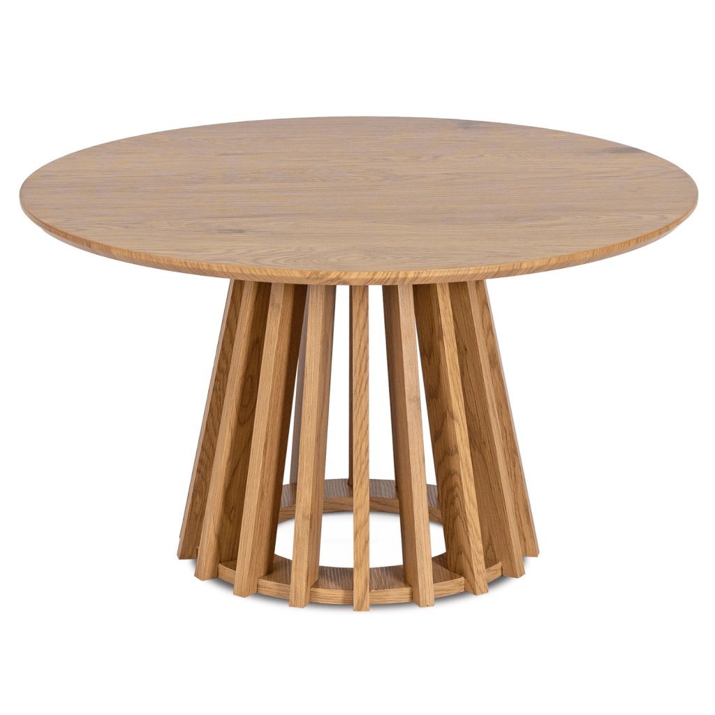 Stolík zaujme robustnou, no zároveň vzdušnou lamelovou podstavou, ktorá dodáva dizajnu originalitu aj stabilitu. Vďaka svojej jednoduchosti a výraznému tvaru je ideálnym doplnkom do obývacej izby, kde poslúži ako praktický aj štýlový prvok.