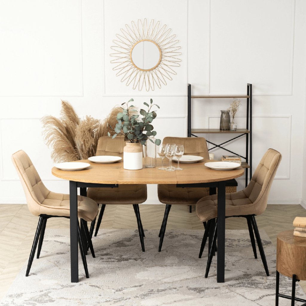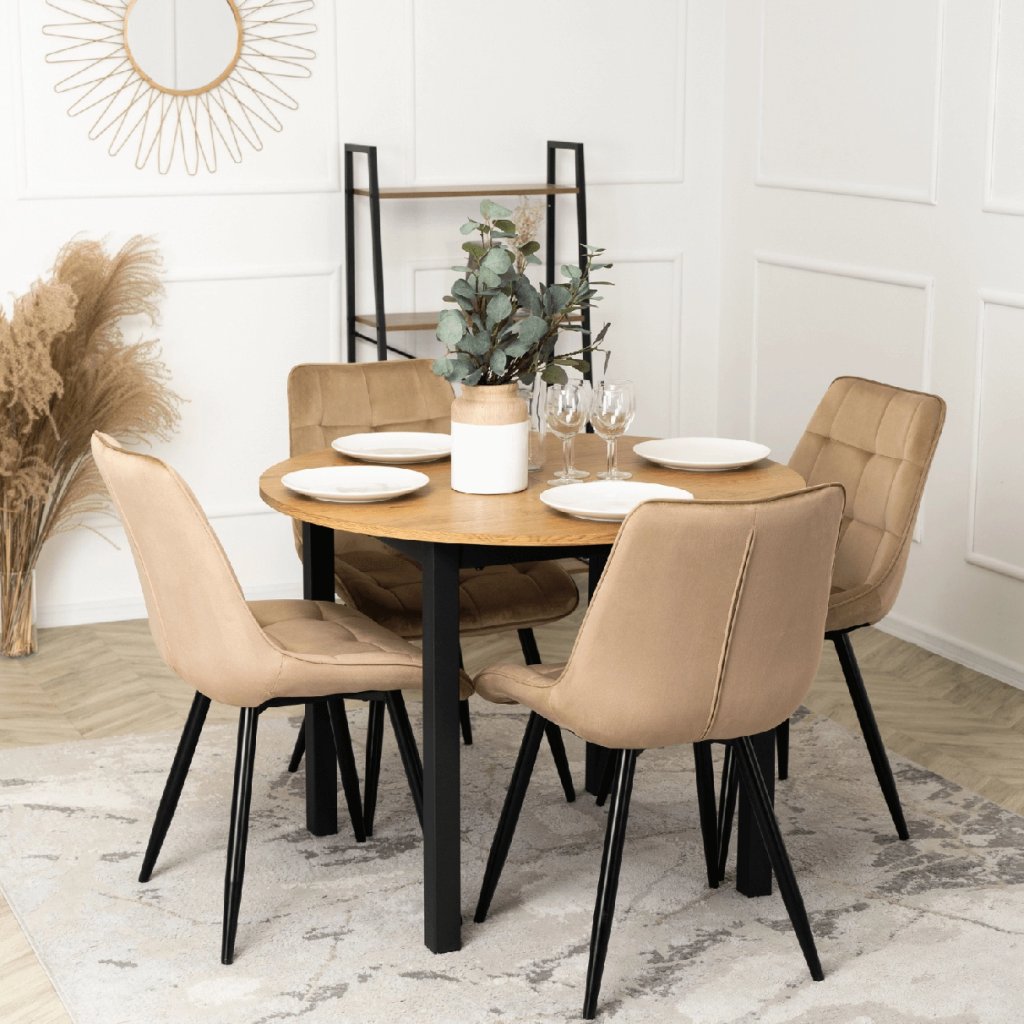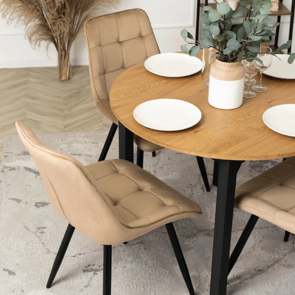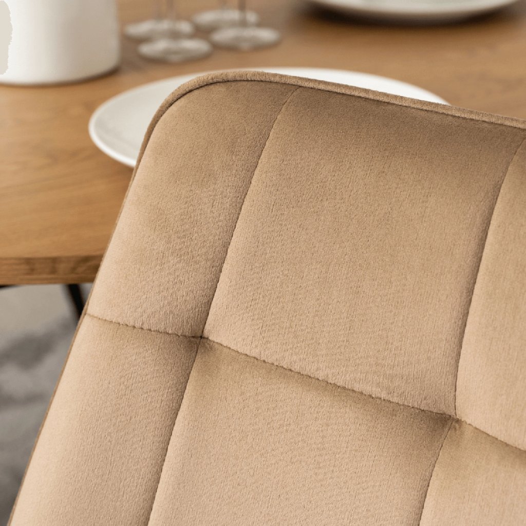 Stolička je vyrobená z najkvalitnejších materiálov. Sedák a operadlo sú potiahnuté zamatovou látkou. Stolička má pevné kovové nohy s práškovým nástrekom v čiernej farbe, ktoré dodajú jedinečný efekt v každom interiéri. Nohy majú ochranu proti poškodeniu podláh.