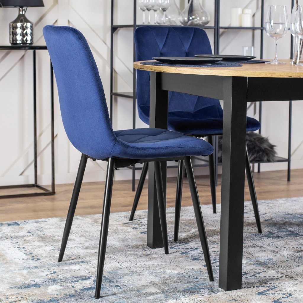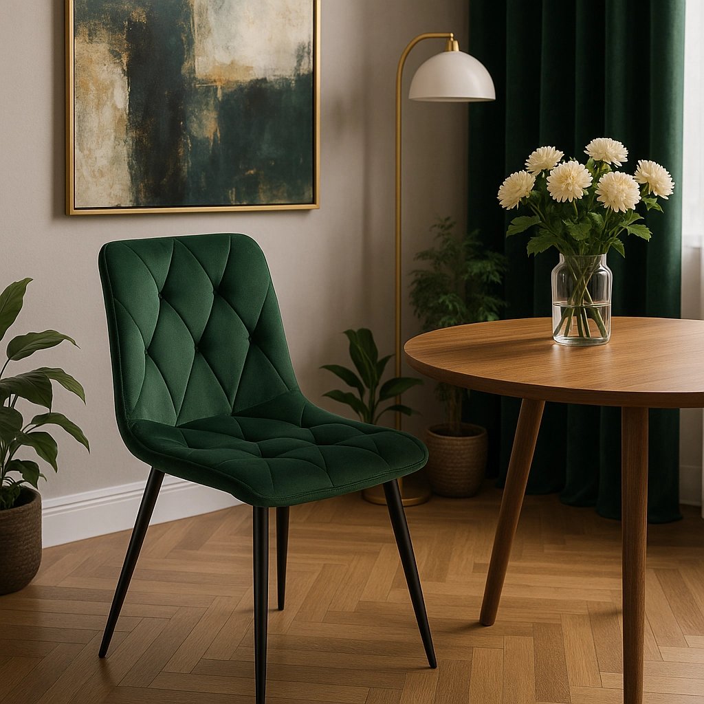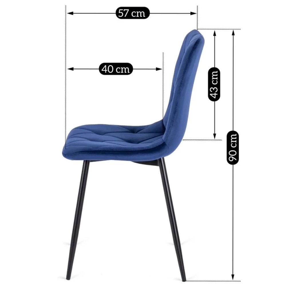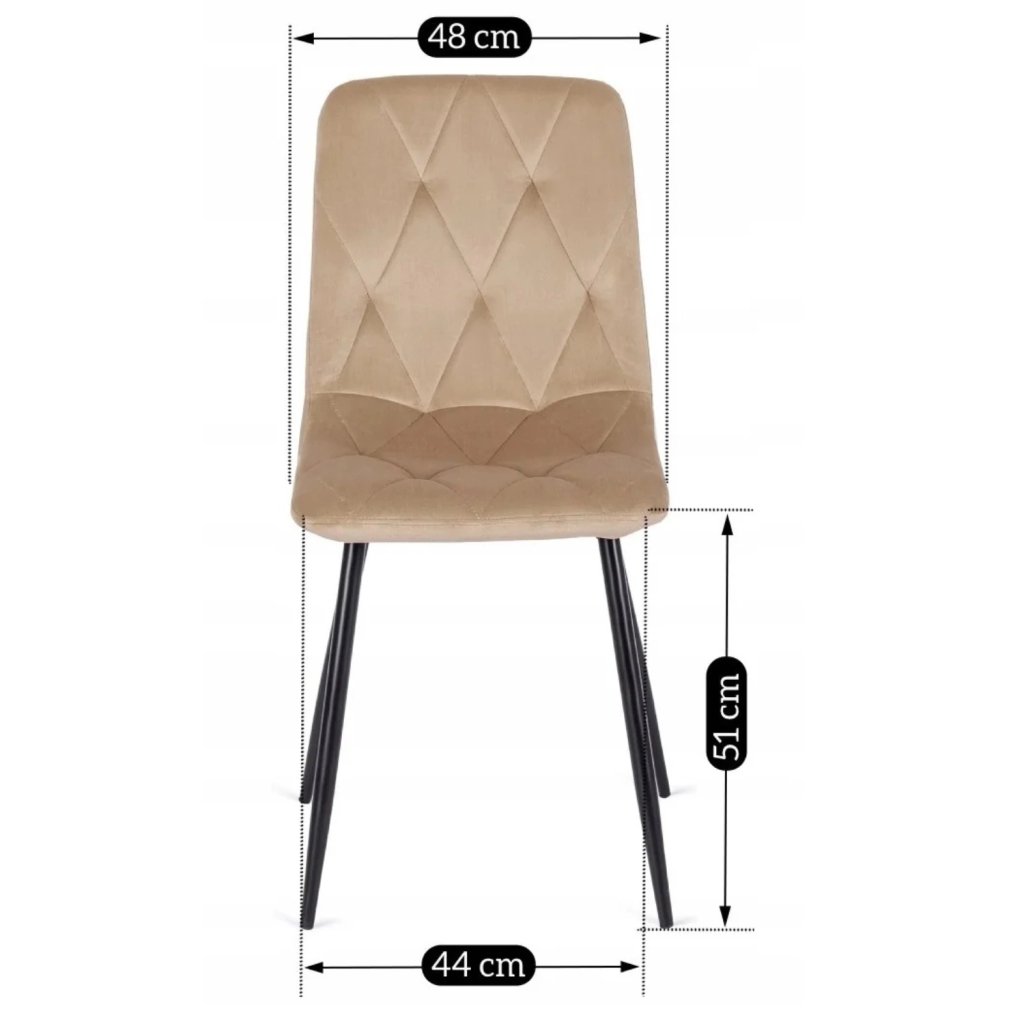 Stolička je vyrobená z najkvalitnejších materiálov. Sedák a operadlo sú potiahnuté zamatovou látkou. Stolička má pevné kovové nohy s práškovým nástrekom v čiernej farbe, ktoré dodajú jedinečný efekt v každom interiéri. Nohy majú ochranu proti poškodeniu podláh.
