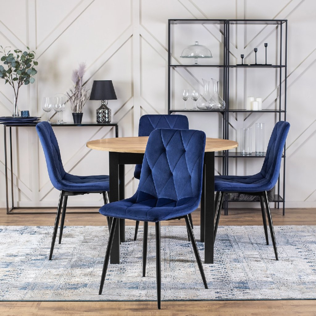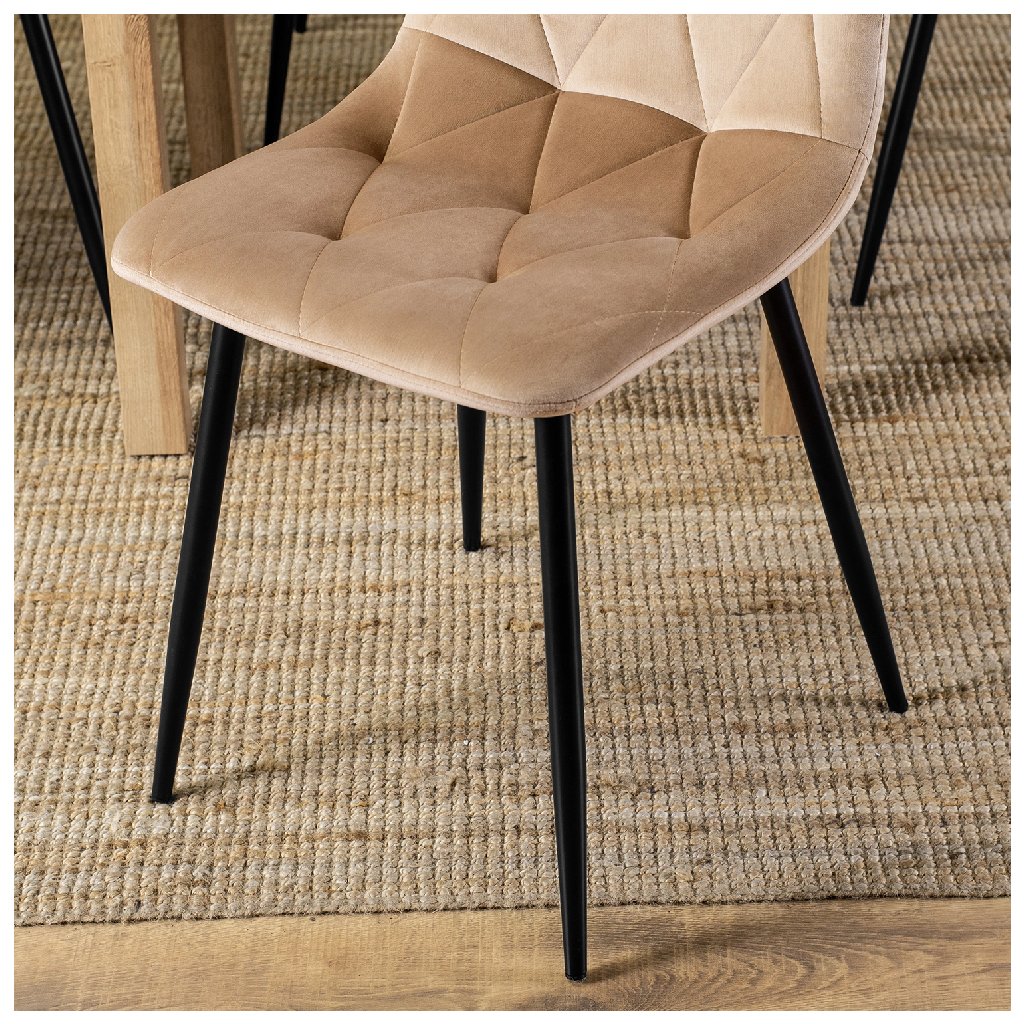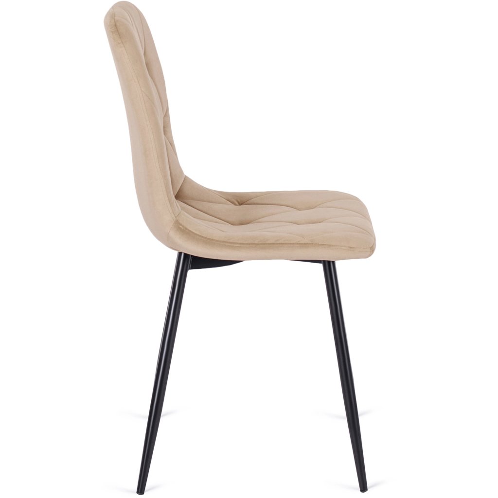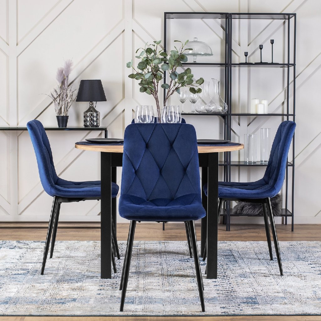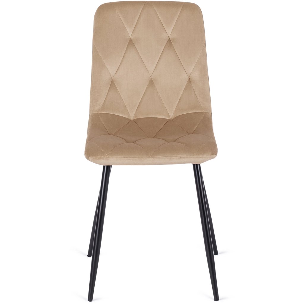Stolička je vyrobená z najkvalitnejších materiálov. Sedák a operadlo sú potiahnuté zamatovou látkou. Stolička má pevné kovové nohy s práškovým nástrekom v čiernej farbe, ktoré dodajú jedinečný efekt v každom interiéri. Nohy majú ochranu proti poškodeniu podláh.