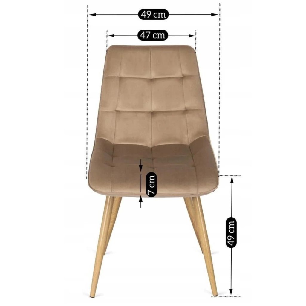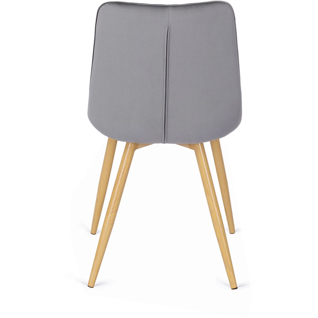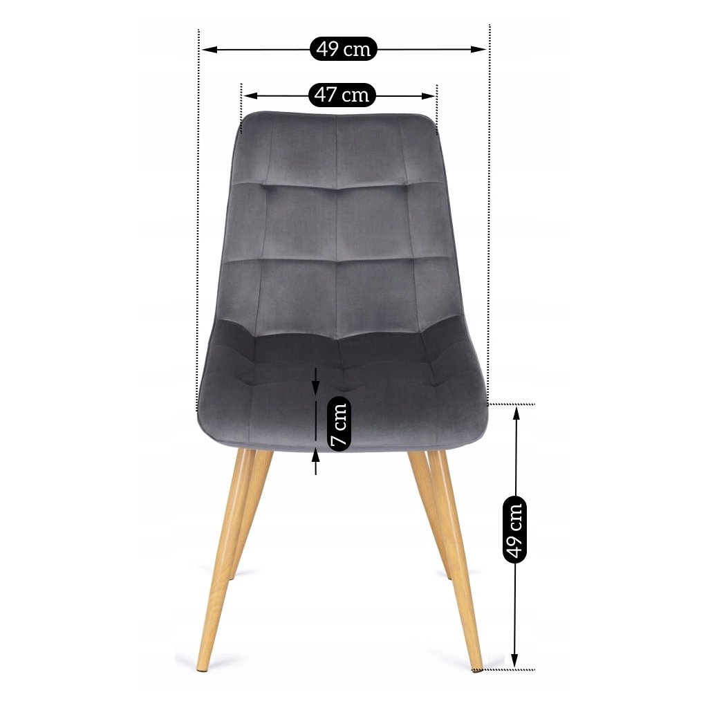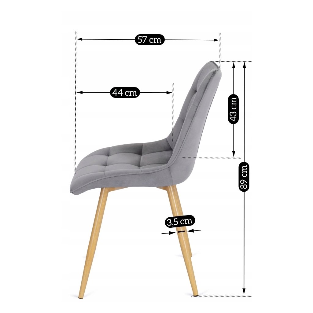 Je čalúnená jemným, príjemným na dotyk materiálom, ktorý jemne mení odtieň pri dotyku, je odolný voči mechaceniu a ľahko sa udržiava. Dekoratívne prešívanie dodáva elegantný vzhľad. Mäkké polstrovanie sedadla a operadla s vrstvou peny zaručuje pohodlné sedenie. Stabilitu poskytuje kovová konštrukcia s nohami v dekore prírodného dreva, ktoré sú pevné a odolné, pričom spodná časť nôh chráni podlahu pred poškriabaním.