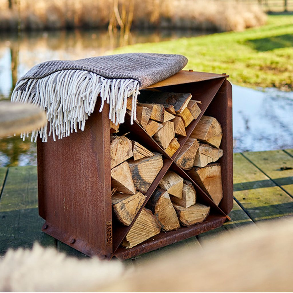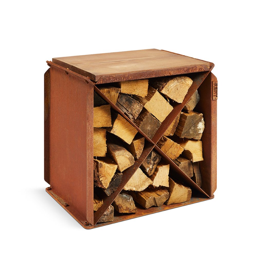 BloX je praktický a dizajnovo čistý doplnok k záhradným pieckam a krbom. Je vyrobený z 2 mm cortenovej ocele, ktorá sa vyznačuje mimoriadnou životnosťou a charakteristickou patinou. Vďaka svojim proporciám a priečnemu deleniu umožňuje prehľadne skladovať drevo – napríklad oddeliť triesky na podkúrenie od väčších polien na dlhšie horenie.