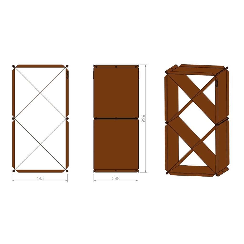 Vďaka svojej konštrukcii ho môžete použiť na výšku aj na šírku, takže sa prispôsobí priestoru na terase alebo pri záhradnom krbe. Praktické vnútorné delenie umožňuje oddeliť triesky a menšie kúsky od väčších polien, aby ste mali vždy drevo usporiadané a po ruke.