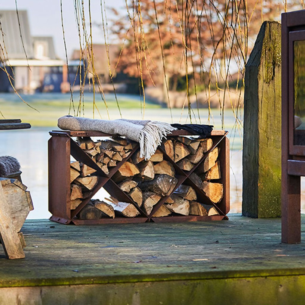 BloXX je väčší variant obľúbeného drevníka BloX, ktorý ponúka ešte viac miesta na uskladnenie dreva. Vyrobený je z kvalitnej 2 mm hrubej cortenovej ocele, ktorá je až 10× odolnejšia než bežná oceľ. Tento materiál časom prirodzene získa hrdzavú patinu, čím drevník získa jedinečný charakter a vysokú životnosť.