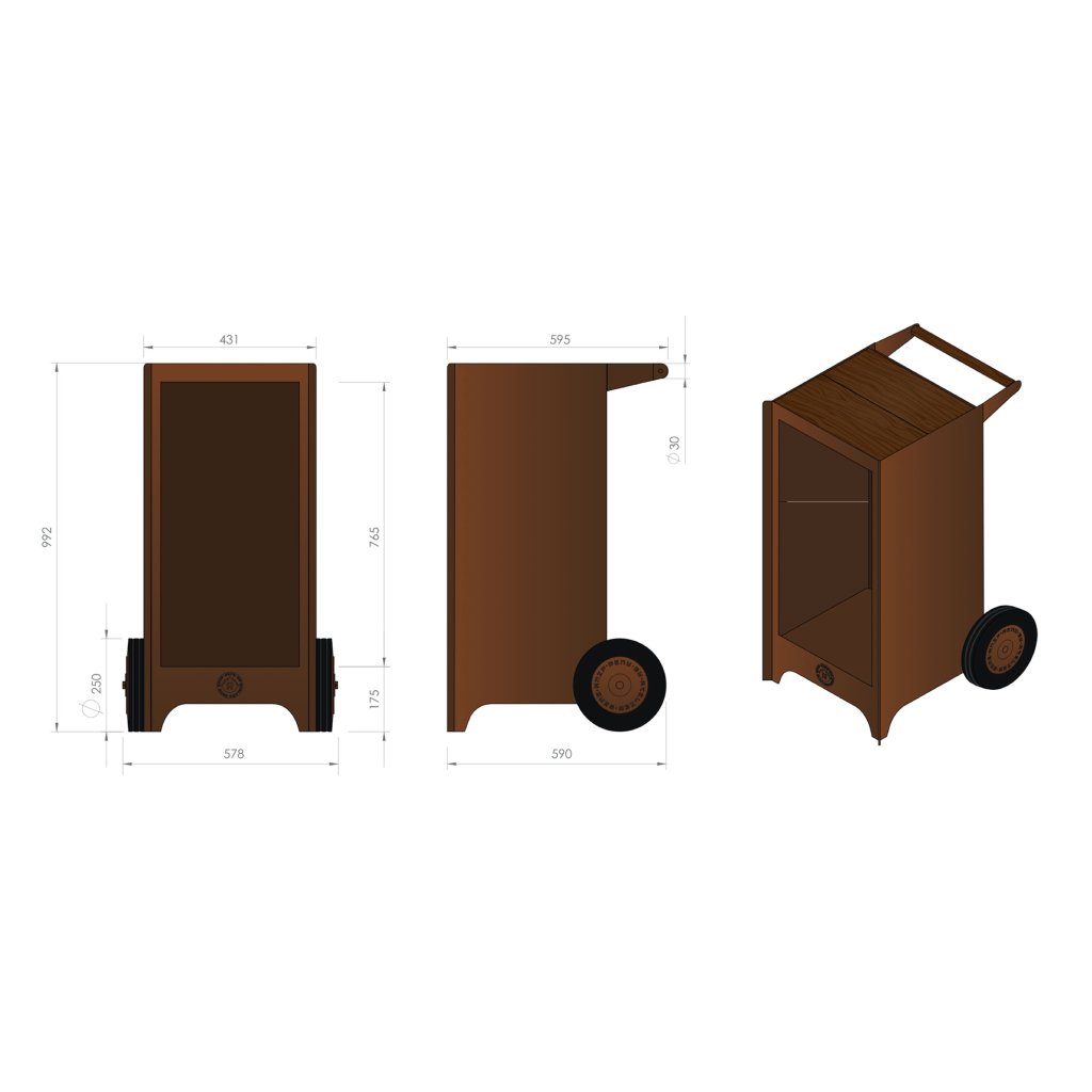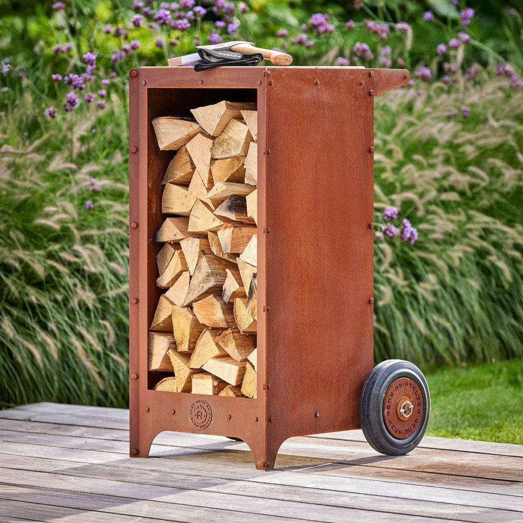 KER je štýlový a funkčný vozík na drevo, ktorý spája odolnosť cortenovej ocele s praktickým riešením pre každodenné používanie. Vďaka veľkým pevným kolesám sa ľahko presúva po terase či záhrade, takže drevo už nemusíte nosiť v rukách.