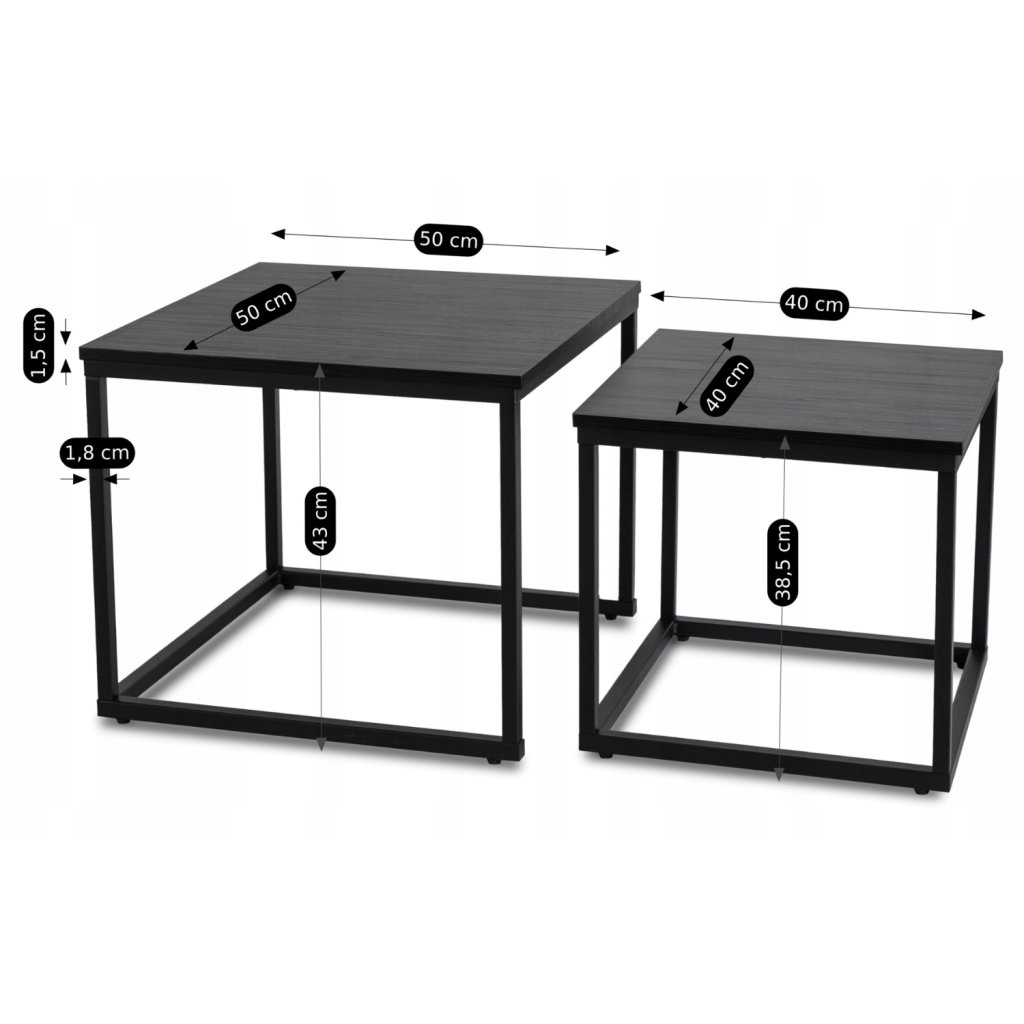 Stolíky sú praktické a ľahko umiestniteľné, pričom menší stolík je možné zasunúť pod väčší, čo ušetrí priestor a ponúkne flexibilitu pri používaní. Vyznačujú sa pevnou konštrukciou a jednoduchými líniami, ktoré dodávajú interiéru moderný charakter.