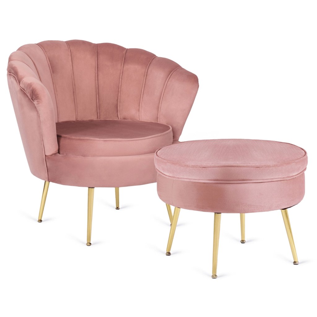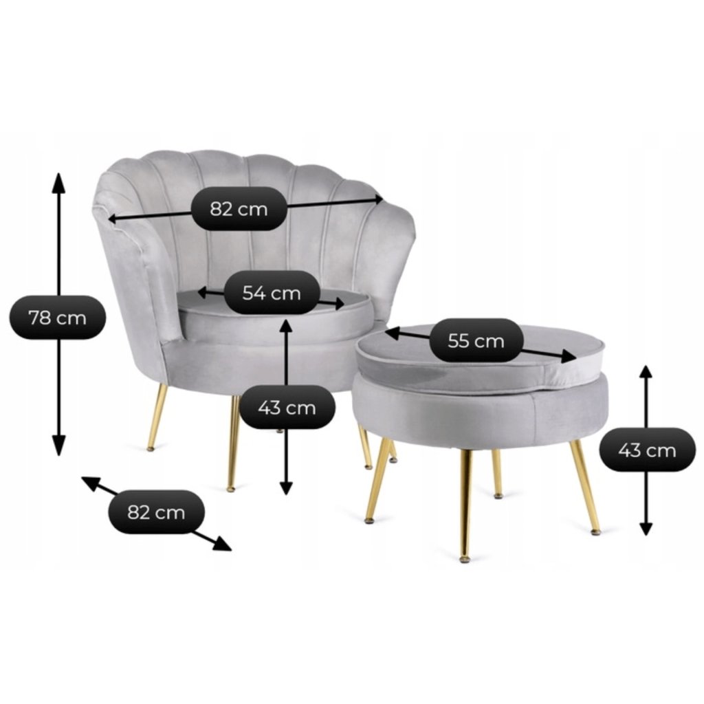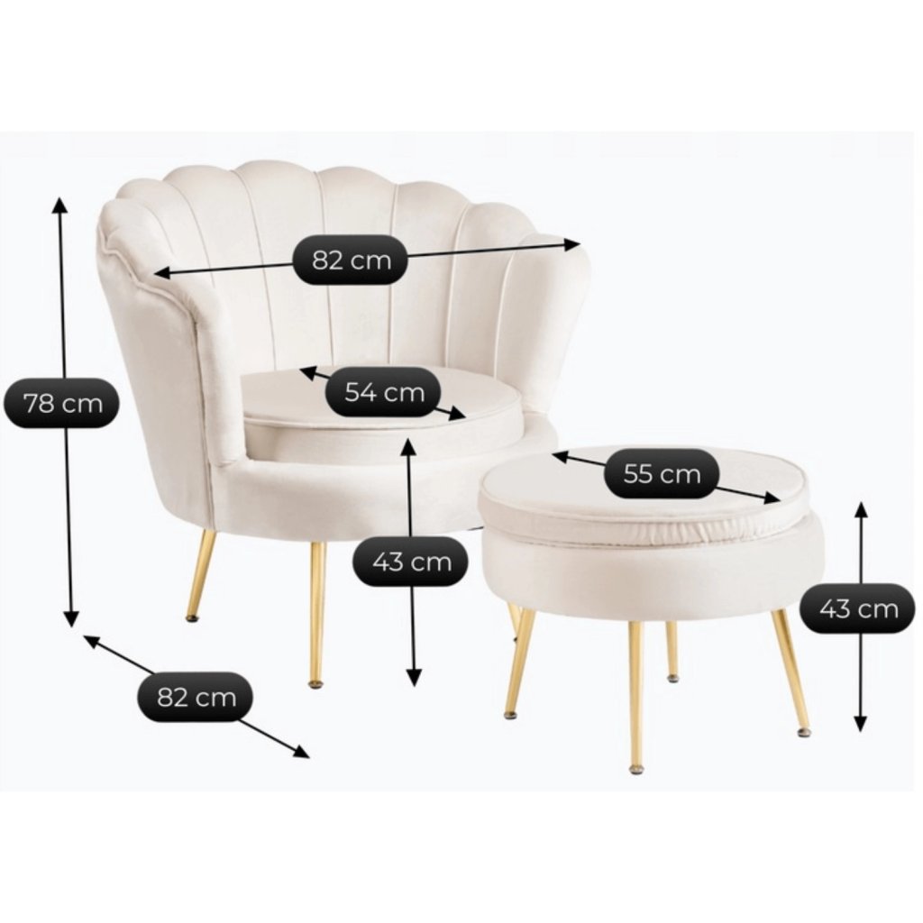 Kreslo má pohodlné, hlboké a dobre polstrované sedadlo s operadlom, ktoré jemne obopína telo a ponúka komfort aj pri dlhšom sedení. Vďaka zamatovej látke je príjemný na dotyk a ľahko udržiavateľný. Konštrukcia so zlatými kovovými nohami dodáva stabilitu a subtilnosť, zatiaľ čo podnôžok v kompletnom sete umožňuje pohodlné natiahnutie nôh a relax v kompletnej polohe.