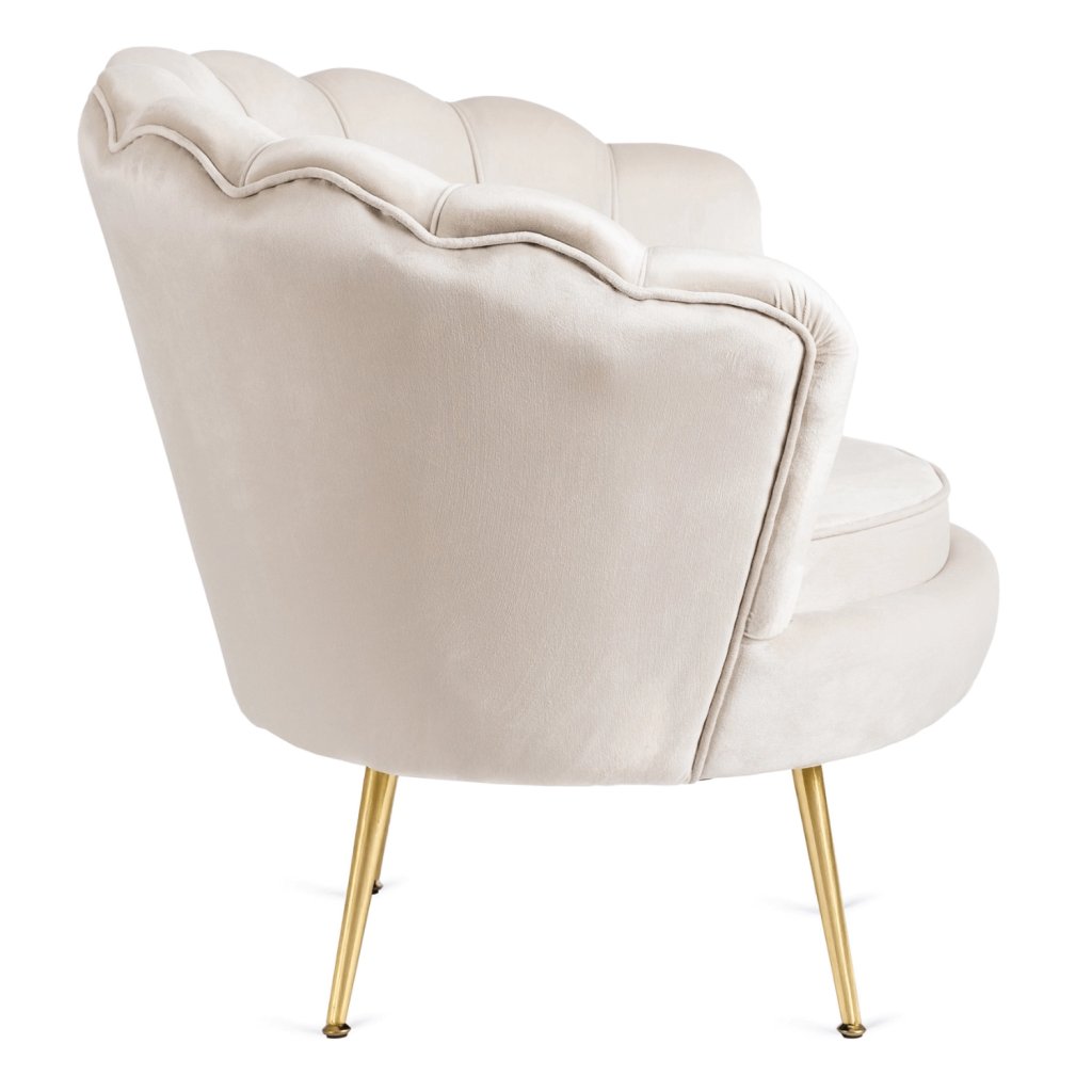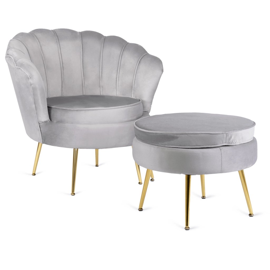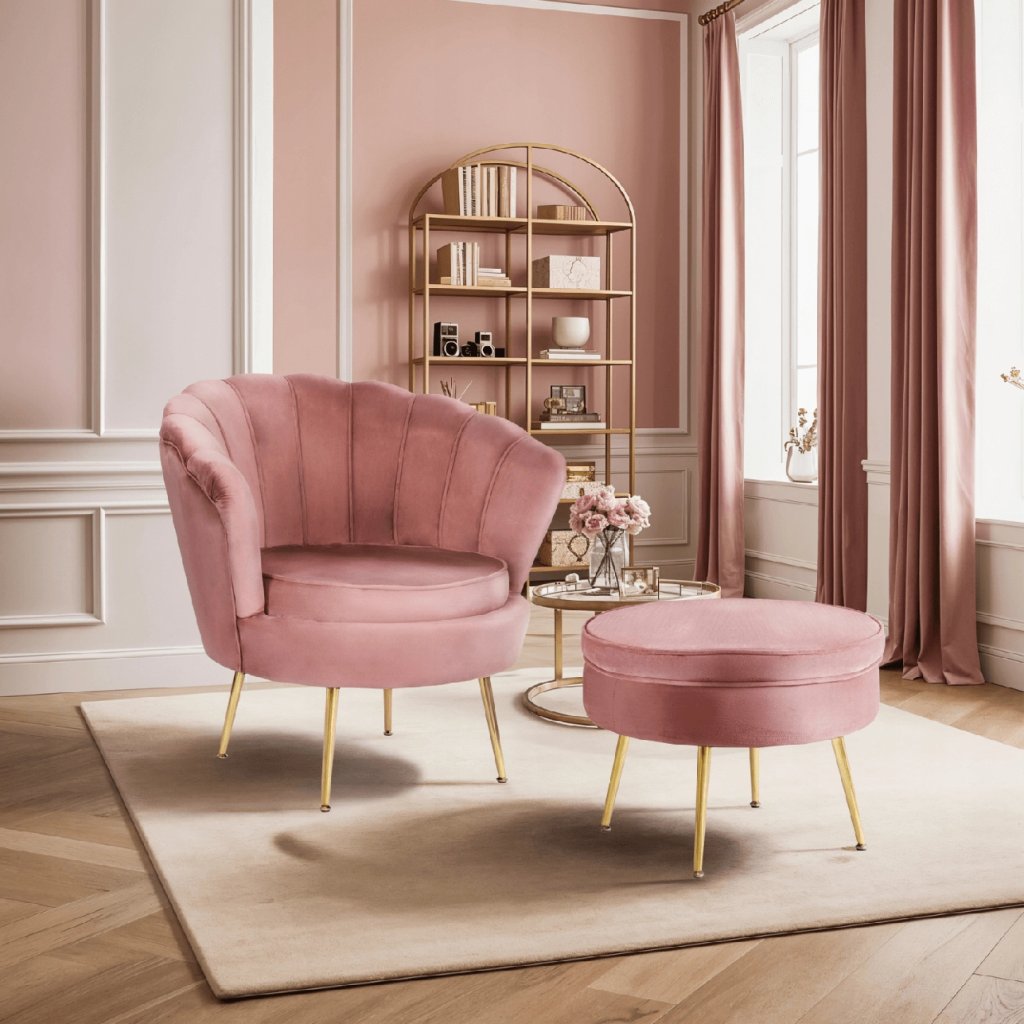 Kreslo má pohodlné, hlboké a dobre polstrované sedadlo s operadlom, ktoré jemne obopína telo a ponúka komfort aj pri dlhšom sedení. Vďaka zamatovej látke je príjemný na dotyk a ľahko udržiavateľný. Konštrukcia so zlatými kovovými nohami dodáva stabilitu a subtilnosť, zatiaľ čo podnôžok v kompletnom sete umožňuje pohodlné natiahnutie nôh a relax v kompletnej polohe.