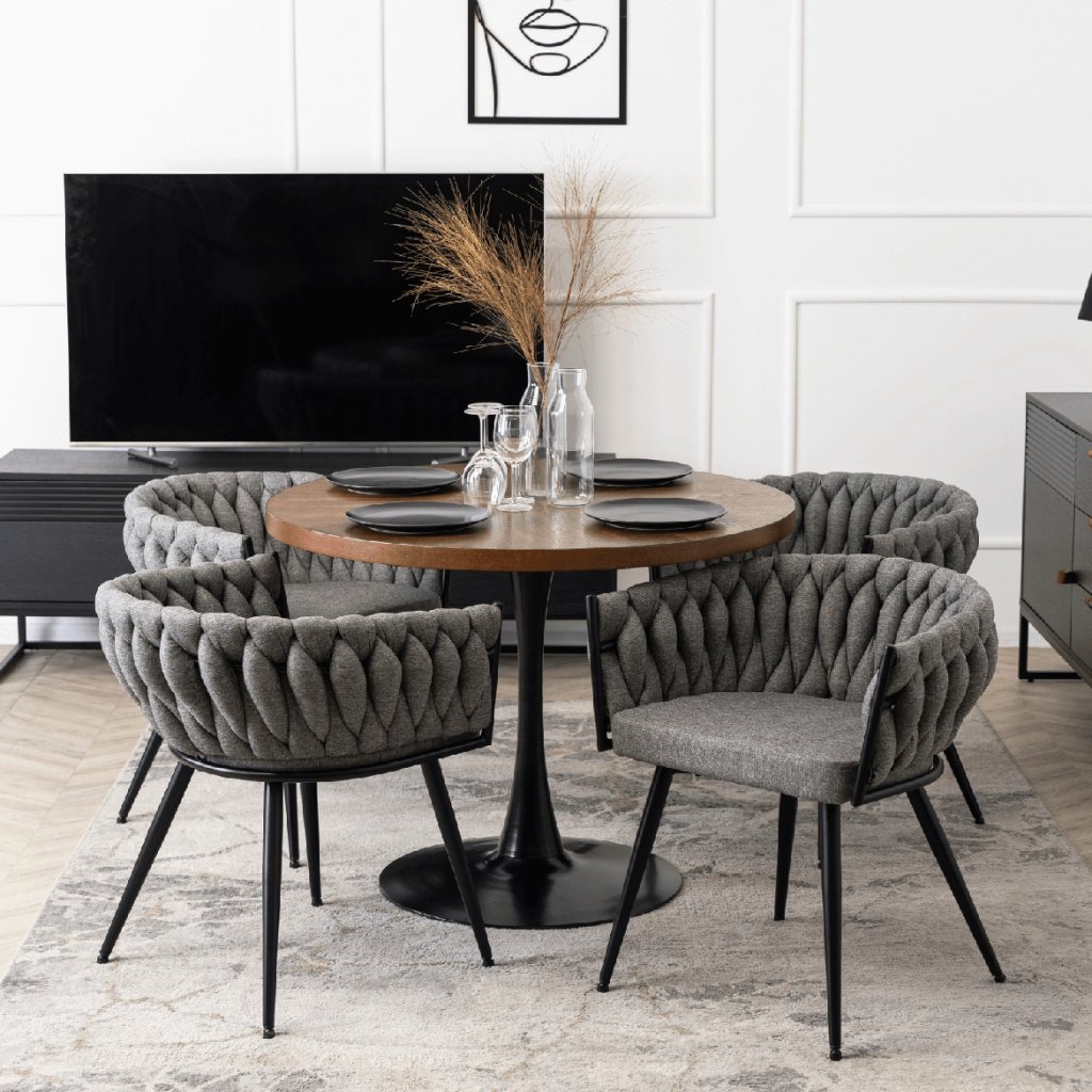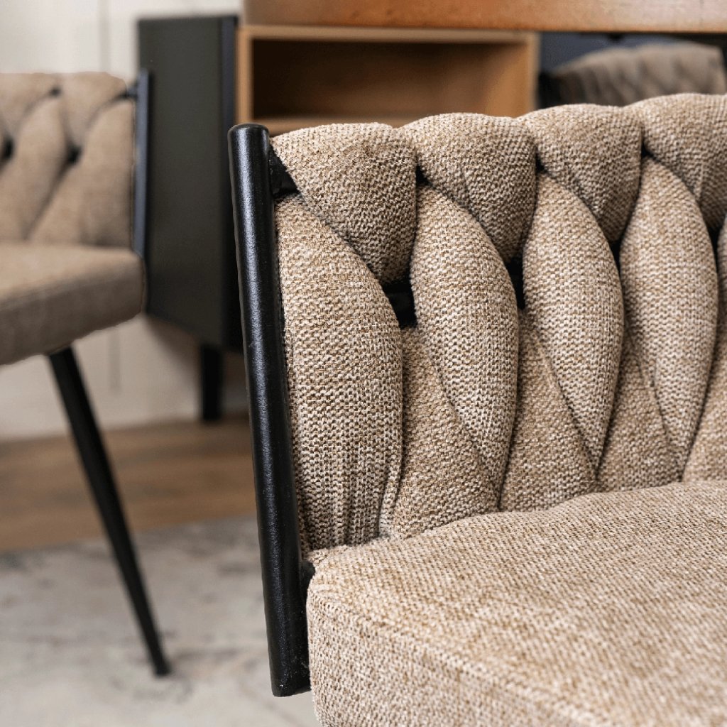Stabilitu zabezpečujú pevné kovové nohy s čiernou matnou povrchovou úpravou, ktoré elegantne dopĺňajú hlboký odtieň látky. Nohy sú mierne rozostúpené a disponujú ochrannými prvkami na spodku, aby chránili podlahu pred poškriabaním.