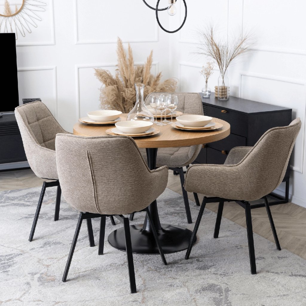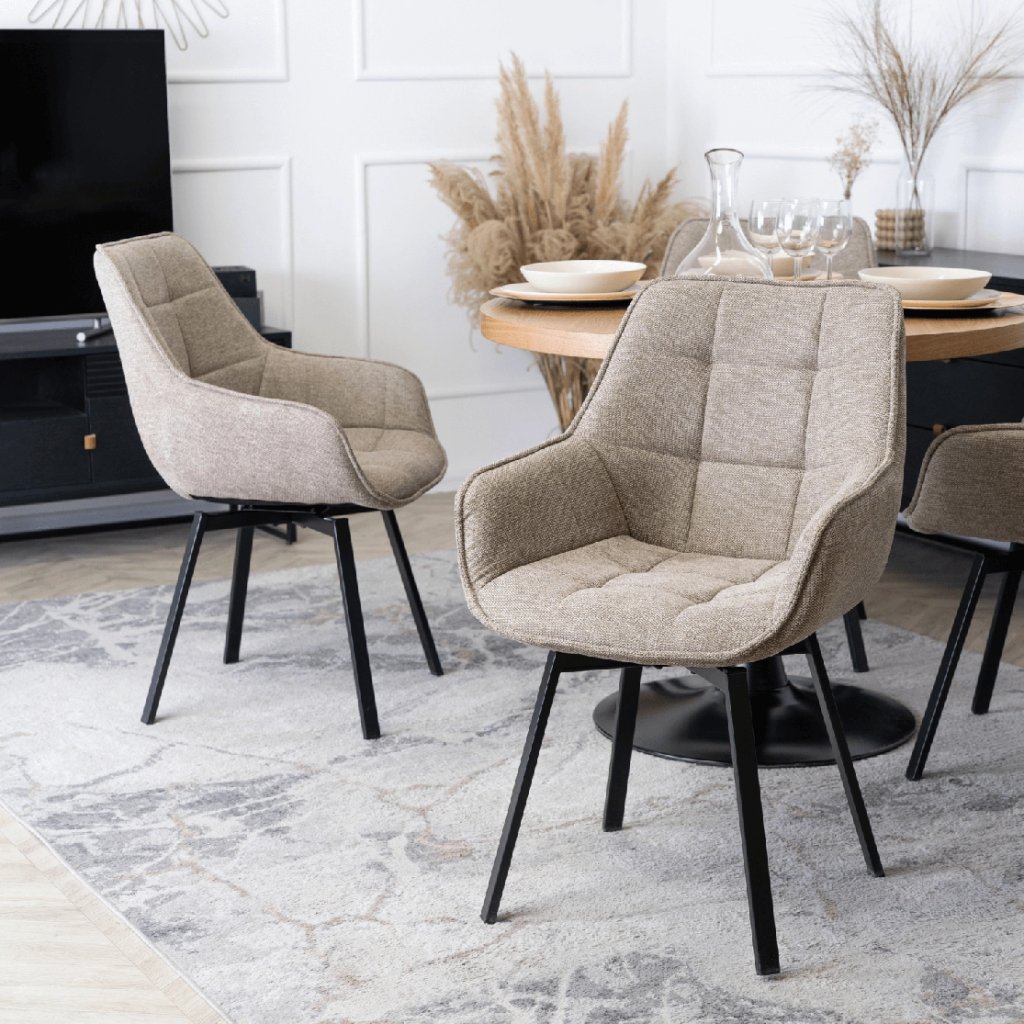 Stabilitu zaisťujú pevné kovové nohy s matnou povrchovou úpravou, vybavené ochrannými prvkami na spodnej časti, ktoré chránia podlahu pred poškriabaním. Vďaka otočnému sedáku stolička poskytuje extra flexibilitu a pohodlnú manipuláciu.
