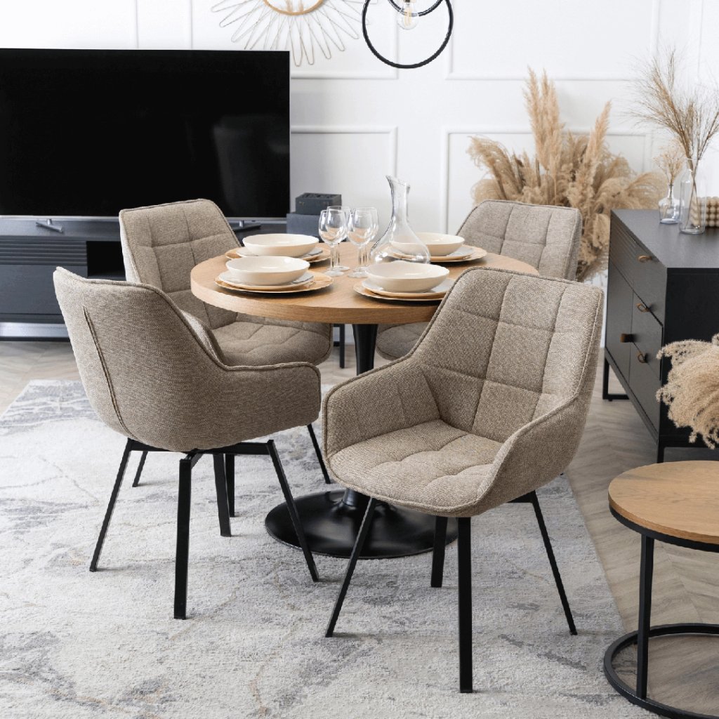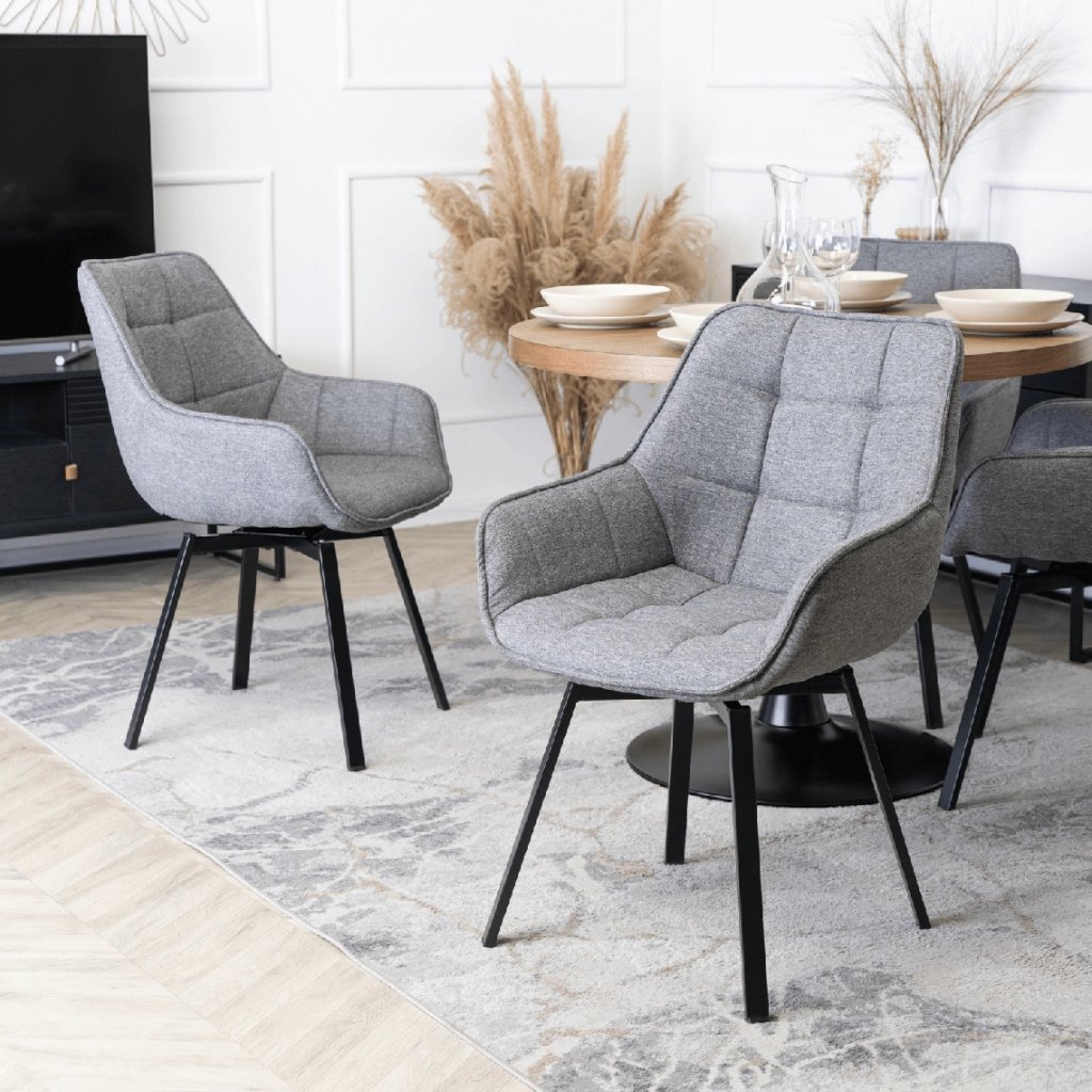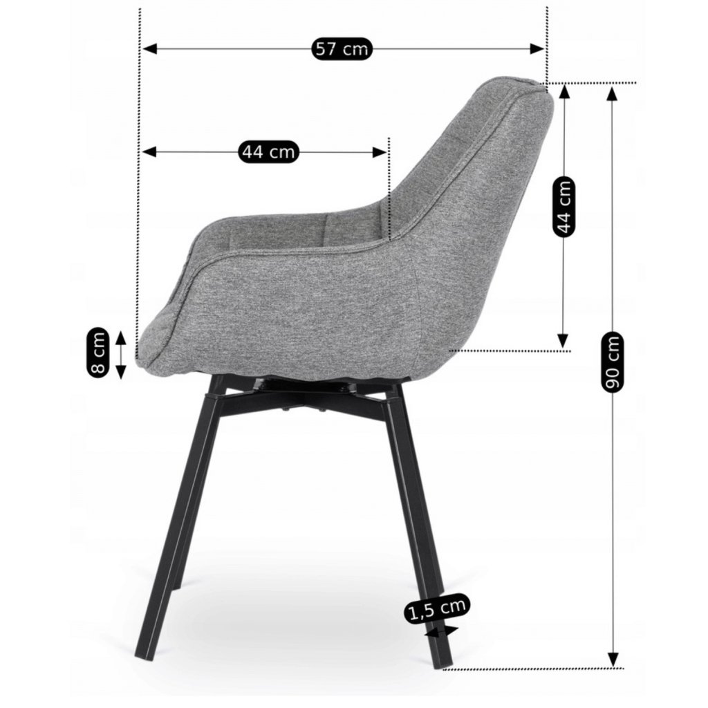 Stabilitu zaisťujú pevné kovové nohy s matnou povrchovou úpravou, vybavené ochrannými prvkami na spodnej časti, ktoré chránia podlahu pred poškriabaním. Vďaka otočnému sedáku stolička poskytuje extra flexibilitu a pohodlnú manipuláciu.