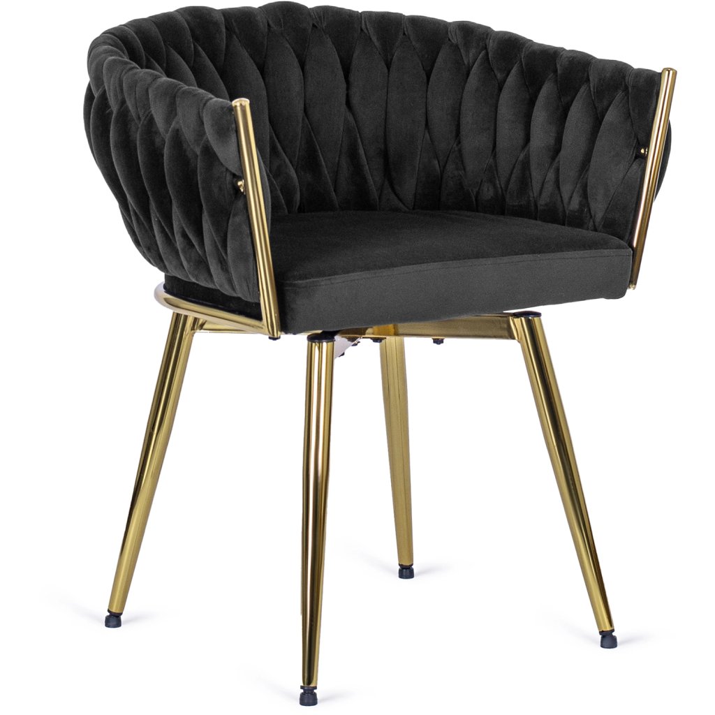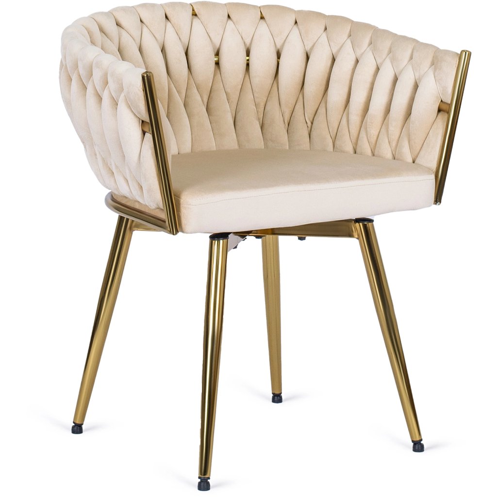 Kreslo je vyrobené z najkvalitnejších materiálov. Sedák a operadlo sú potiahnuté zamatovou látkou. Kreslo má pevné kovové nohy s práškovým nástrekom v zlatej farbe, ktoré dodajú jedinečný efekt v každom interiéri. Nohy majú ochranu proti poškodeniu podláh a kreslo je otočné.