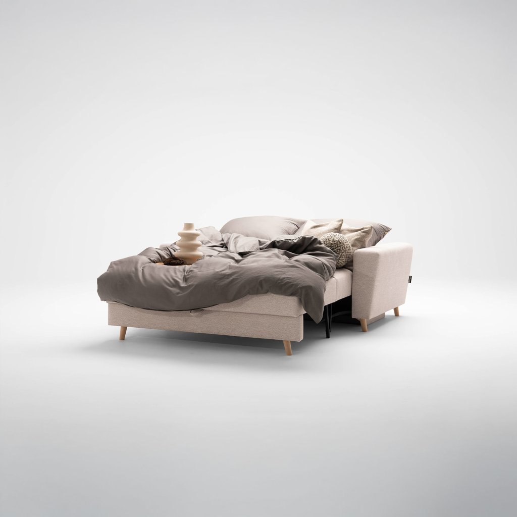 Spacia funkcia je určená pre najvyššiu kvalitu vášho spánku. A to každý večer, nielen cez sviatky! Preto sú v srdci pohovky, okrem rámu zo 100% masívneho bukového dreva ukryté komponenty, ktoré sa v posteliach používajú dennodenne. Ide o špičkové taštičkové pružiny, vysoko elastickú HR penu a kvalitný lamelový rošt. Čo to pre vás znamená? Dobrý nočný spánok aj po dňoch, ktoré vám dali zabrať.
