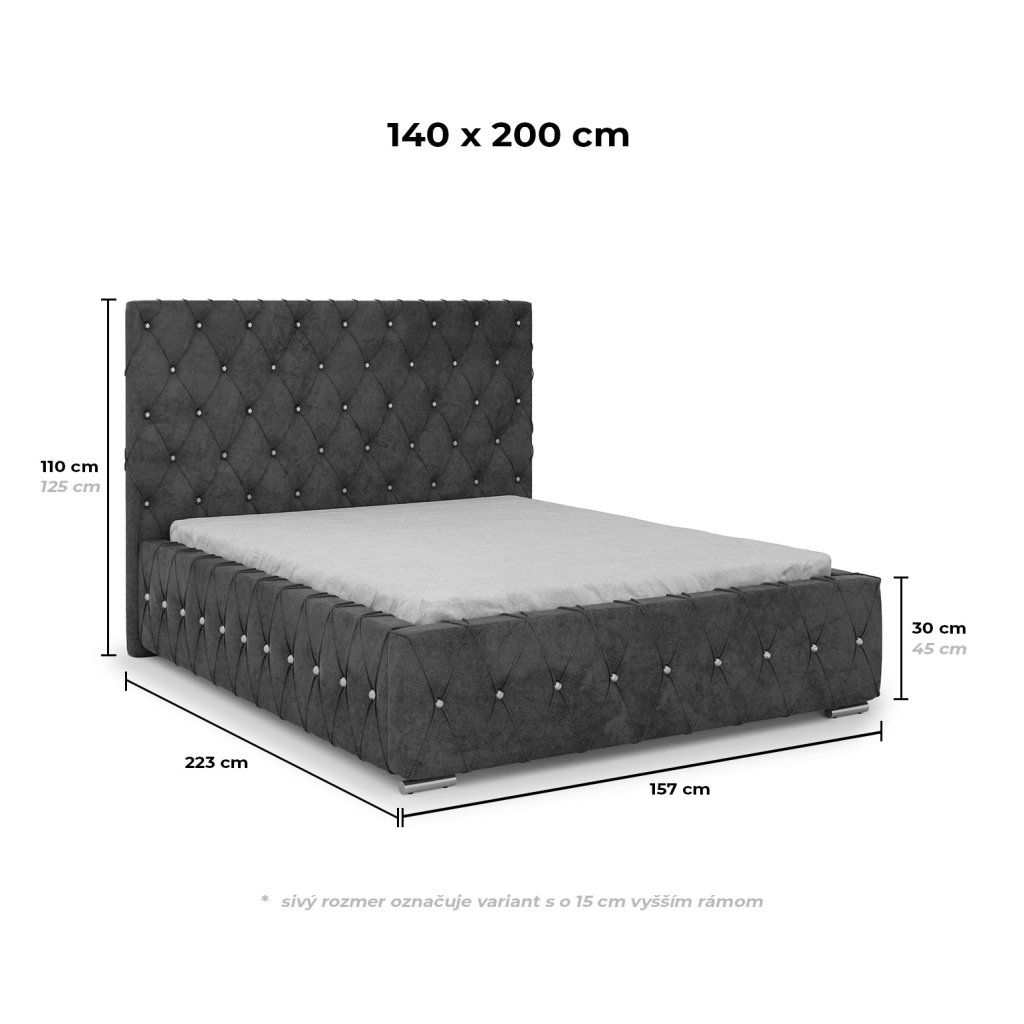 - možné objednať aj variant s o 15 cm vyšším rámom - zvýšené čelo, bočnice aj nožné čelo