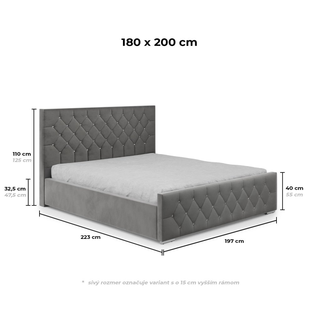 - možné objednať aj variant s o 15 cm vyšším rámom - zvýšené čelo, bočnice aj nožné čelo