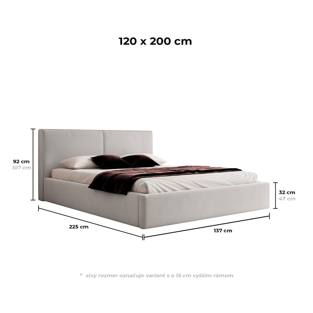- možné objednať aj variant s o 15 cm vyšším rámom - zvýšené čelo, bočnice aj nožné čelo