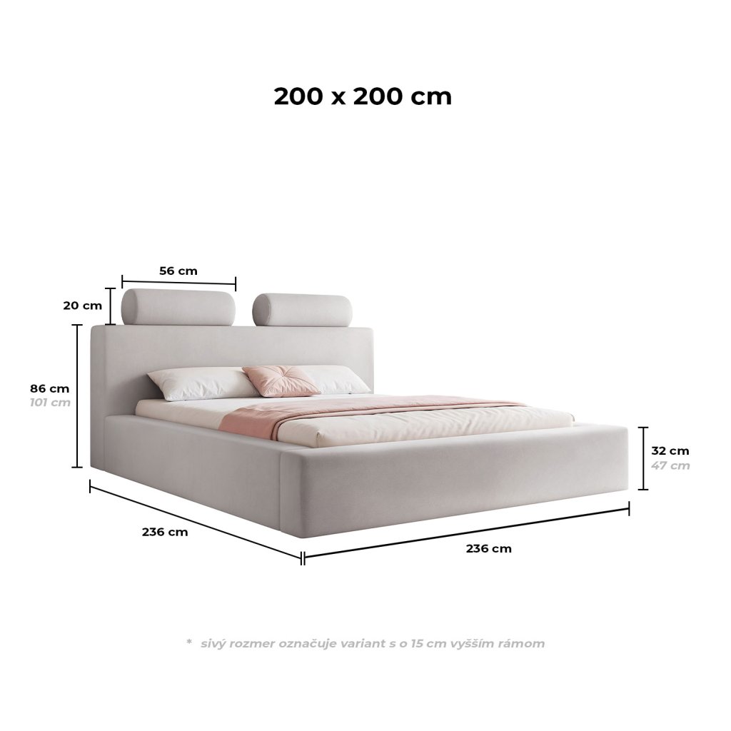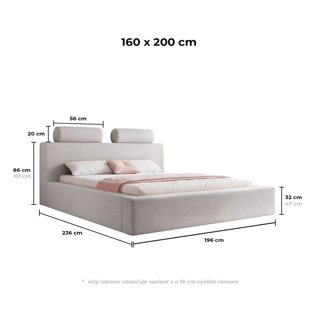 - opierky valcovitého tvaru sú pevne pripevnené k čelu postele v nemennom rozmere - 20x56 cm
