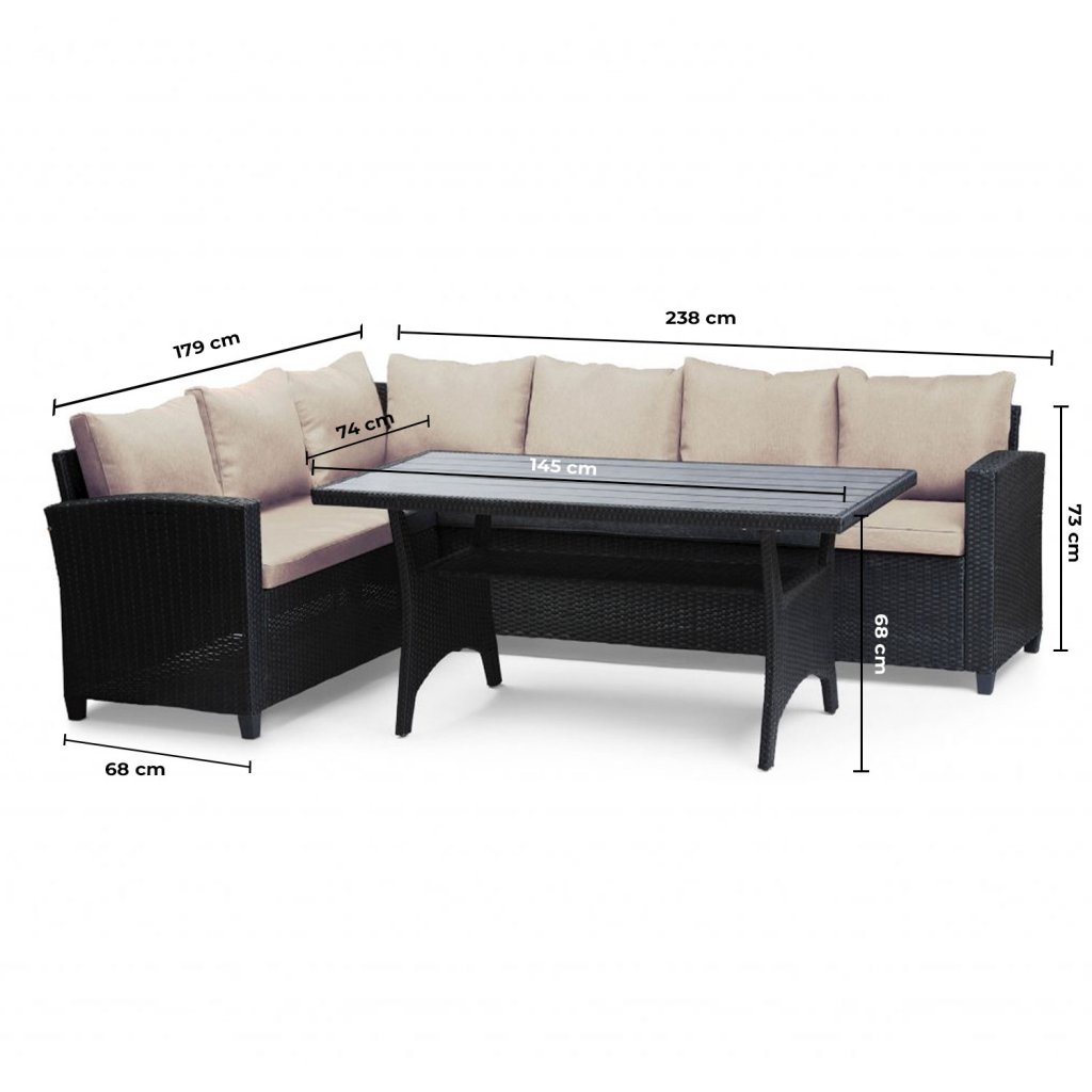 - časti súpravy: 1x trojmiestna sedačka, 1x štvormiestna sedačka, 1x stôl, súprava vankúšov