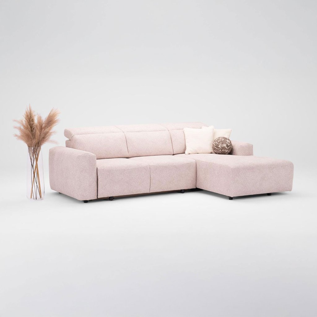 Sedacia časť je tvorená obdĺžnikovými segmentmi, ktoré plynulo prechádzajú do operadla v rovnakom štýle. Celkový dizajn dotvárajú jednoduché podrúčky, ktoré podčiarkujú súlad a eleganciu sedačky. Nečakaným prvkom, ktorý dodáva MERANU šmrnc, je nastaviteľná opierka hlavy. Okrem estetickej hodnoty výrazne zvyšuje aj komfort – jednoducho si ju prispôsobíte tak, aby dokonale podporila vaše telo pri relaxe.