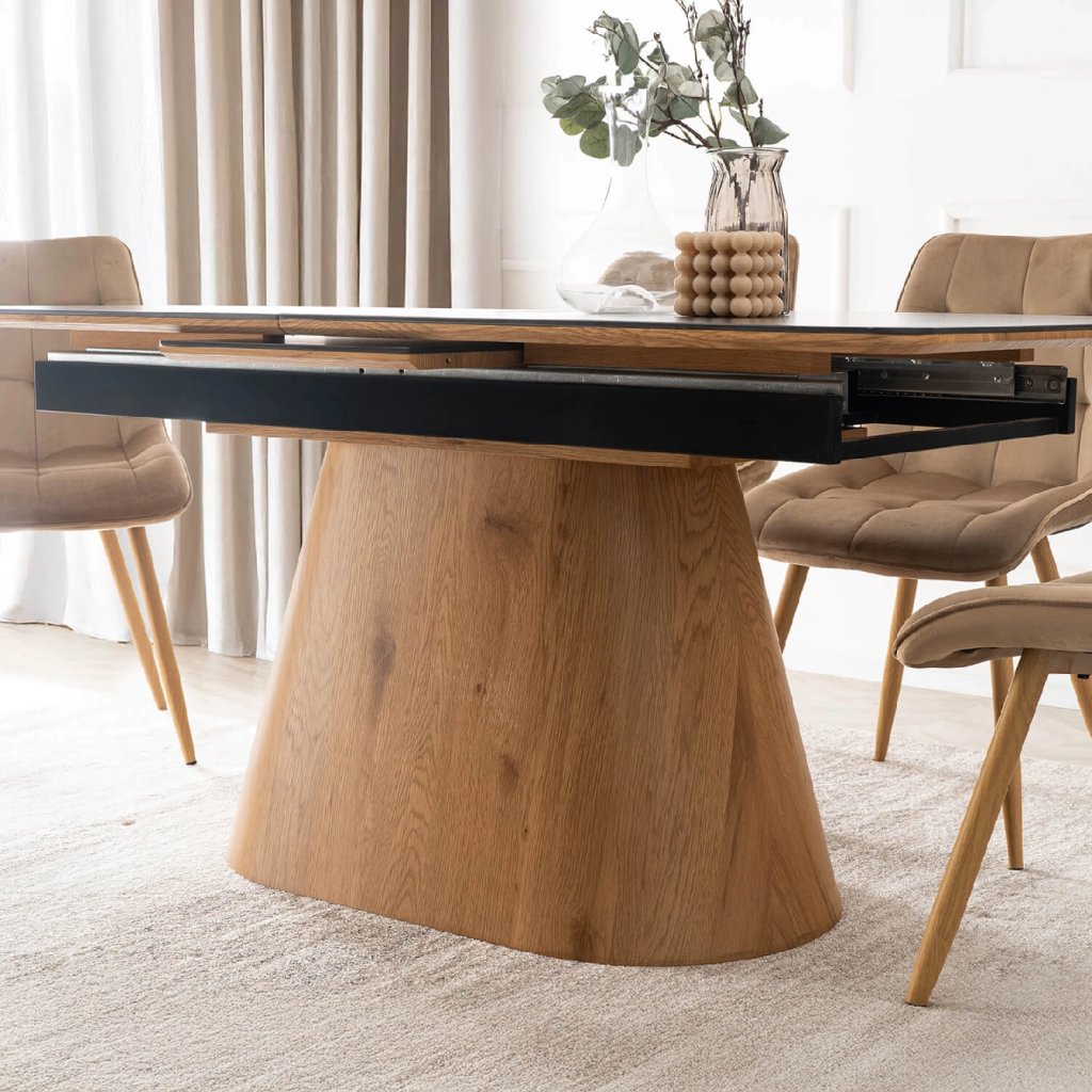Vďaka mechanizmu rozkladania možno ľahko prispôsobiť veľkosť stola aktuálnym potrebám — či už ide o rodinný obed alebo väčšiu návštevu. Stabilná konštrukcia zabezpečuje spoľahlivosť a dlhovekosť stola, zatiaľ čo farebné prevedenie dodáva interiéru eleganciu a moderný vzhľad.
