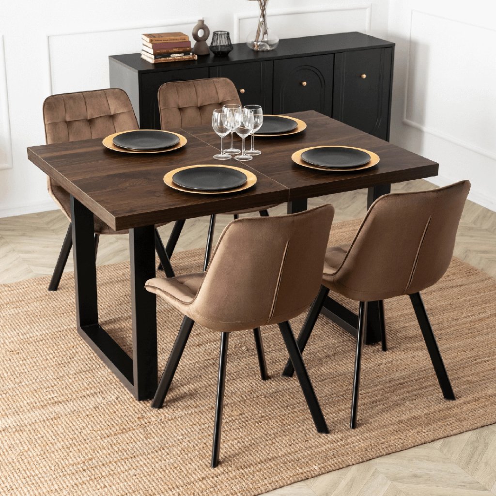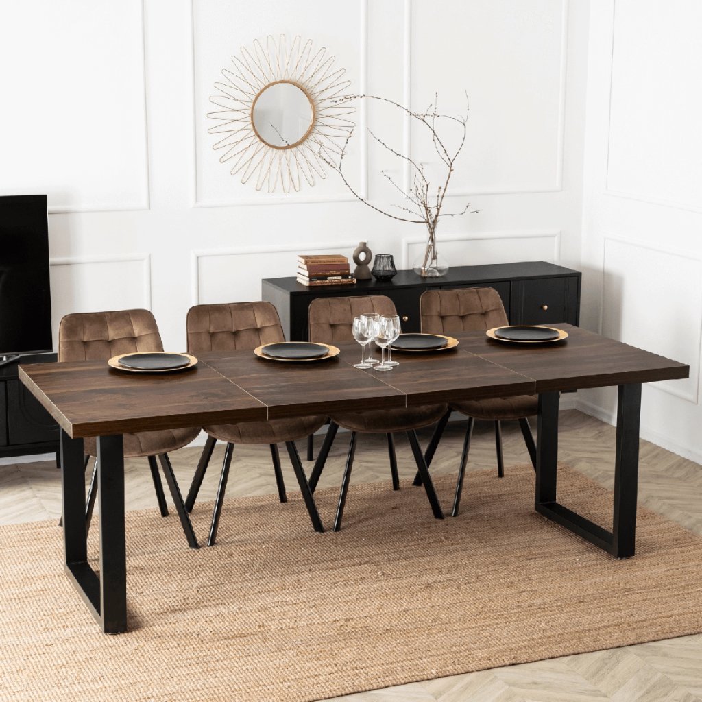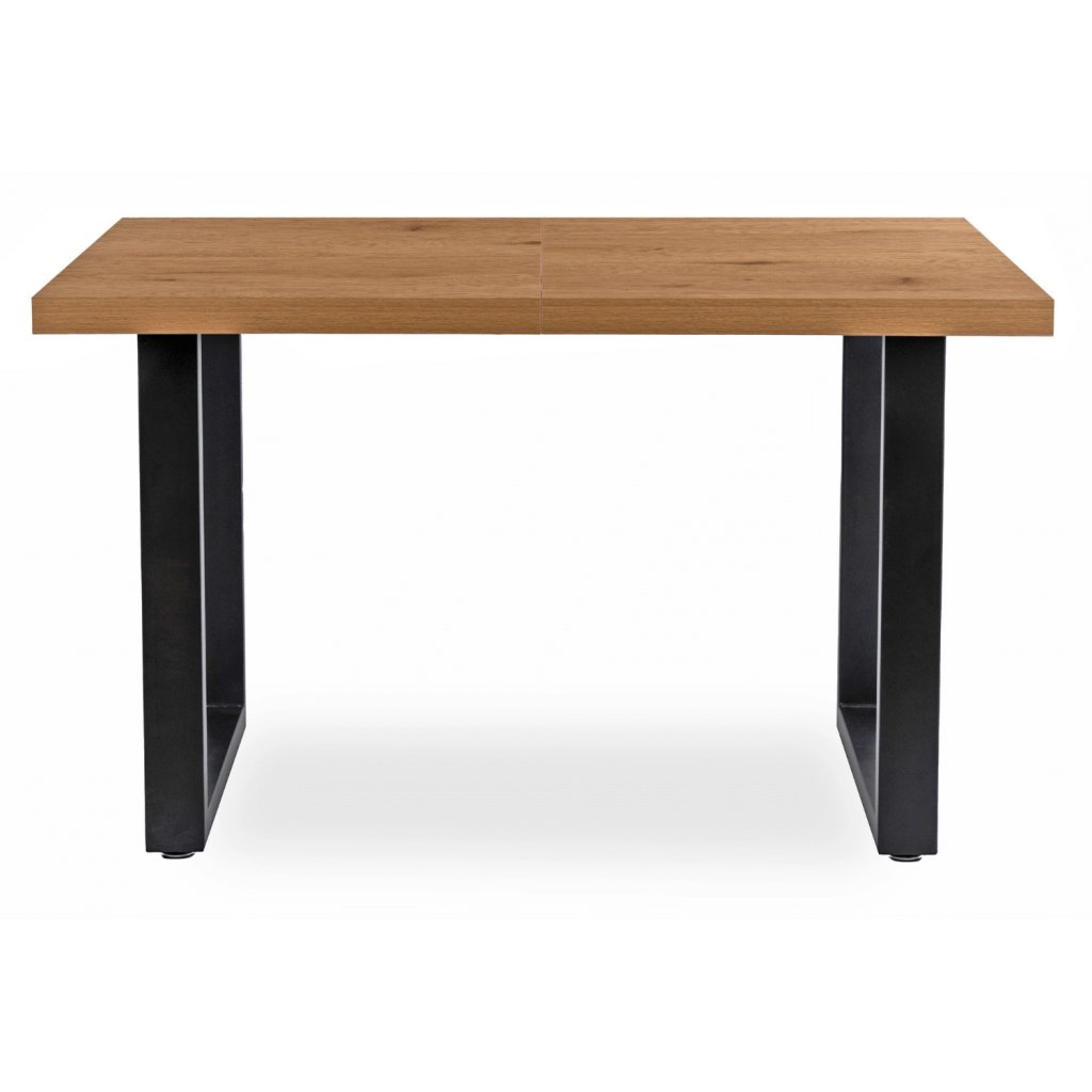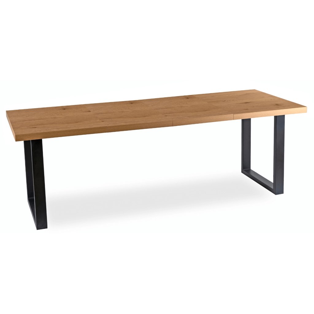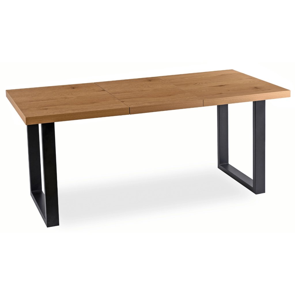 Stôl vyniká svojou jednoduchosťou a jedinečnosťou – kombinácia teplého odtieňa duba a výraznej čiernej kovovej konštrukcie prináša do vášho interiéru štýl a charakter. Praktický mechanizmus rozkladania umožňuje prispôsobiť veľkosť stola podľa potreby, čím sa stáva skvelým riešením pre každodenné použitie aj väčšie stretnutia.