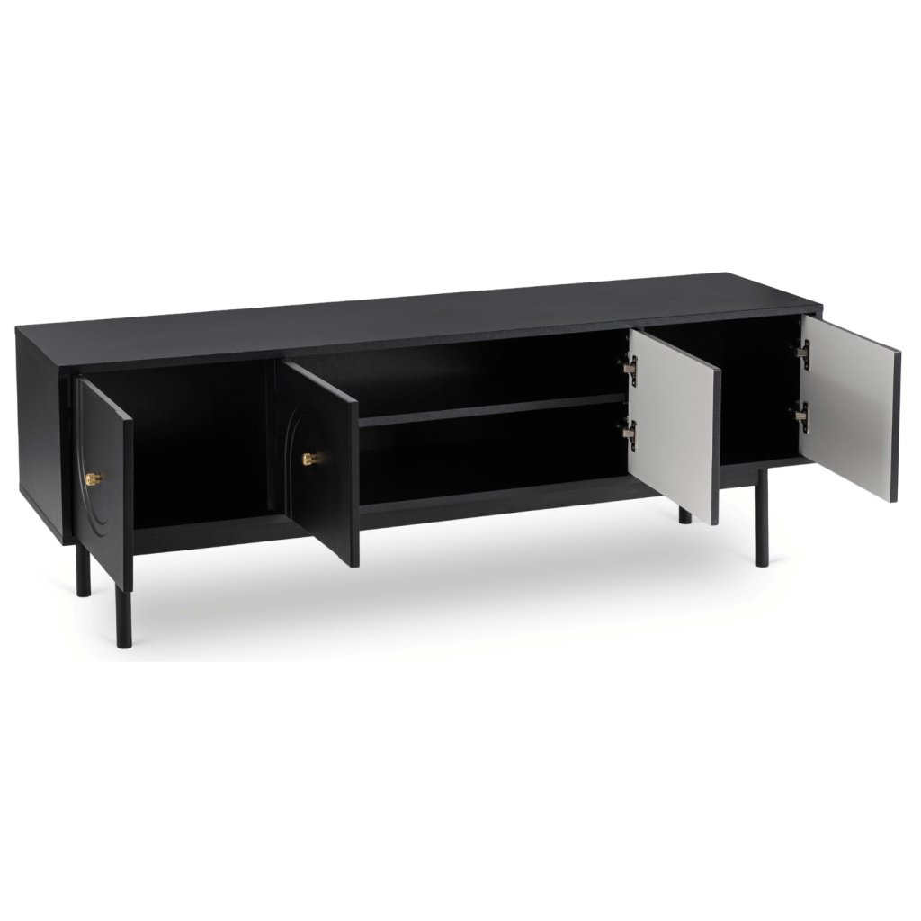 Komoda MARLEN vyniká kvalitným spracovaním – materiál korpusu a dvierok je z laminovanej drevotriesky a MDF, s kovovými nožičkami pre stabilitu. Vďaka svojej šírke 155 cm sa hodí najmä do obývacej izby ako výrazný a praktický prvok vašej domácnosti. Doplní moderné a minimalistické interiéry a zabezpečí prehľadné usporiadanie vecí.