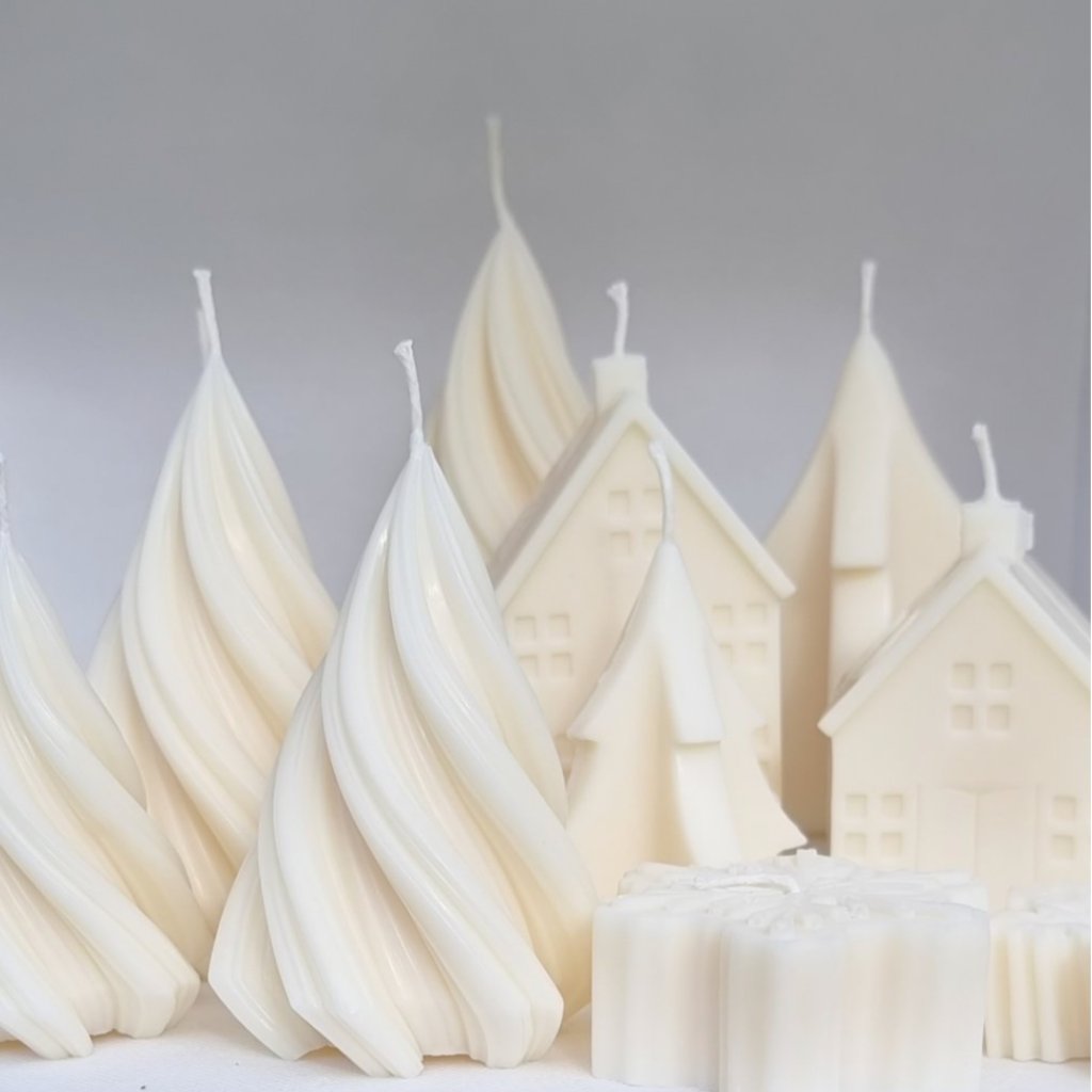 V sade  VIANOČNÉ STROMČEKY nájdete sviečky, ktoré sú vhodné aj pre alergikov. Všetky sviečky sú bez vône a ide o skvelú dekoráciu na vianočný stôl. Všetky sviečky sú ručne odlievané zo 100 % prírodného vosku. Súčasťou balenia je okrúhla tácka JESMONITE v béžovej alebo sivej farbe.