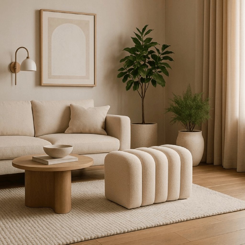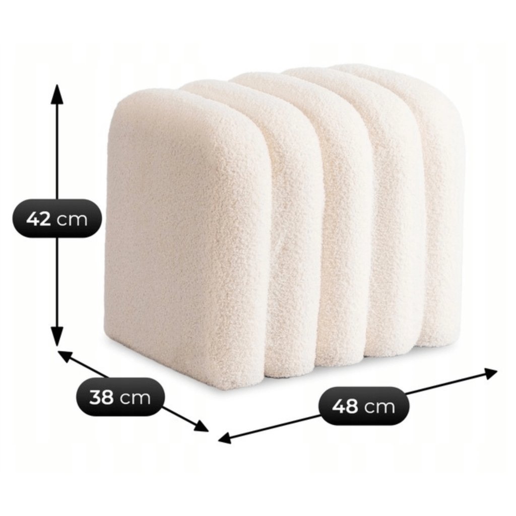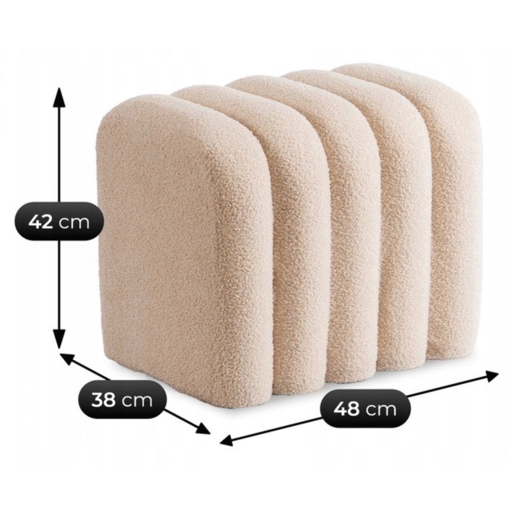 Taburetka je navrhnutá tak, aby bola stabilná, príjemná na dotyk a esteticky zaujímavá. Látka typu boucle dodáva jemnú štruktúru a moderný vzhľad, ktorý doplní rôzne štýly interiéru.