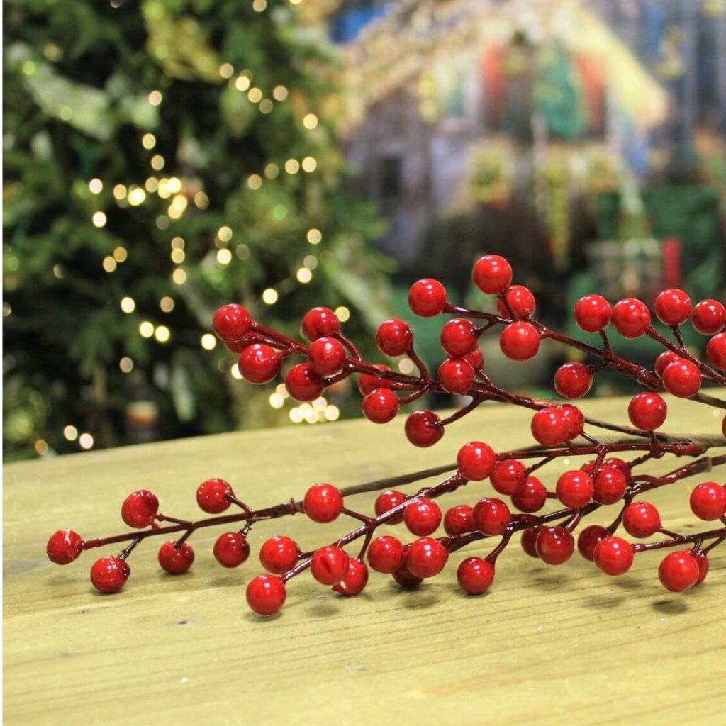 Umelá halúzka s bobuľkami - ČERVENÁ 66 cm