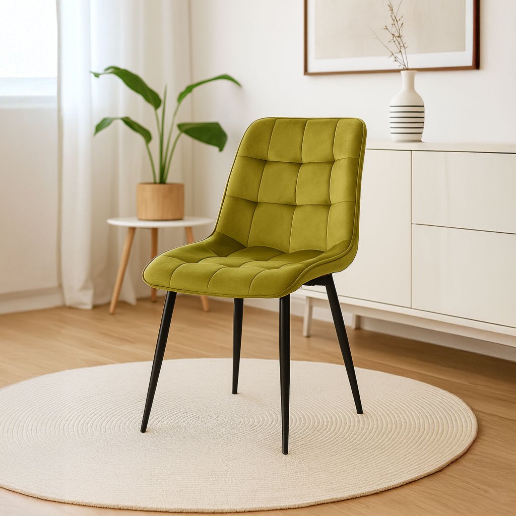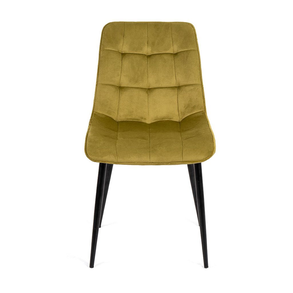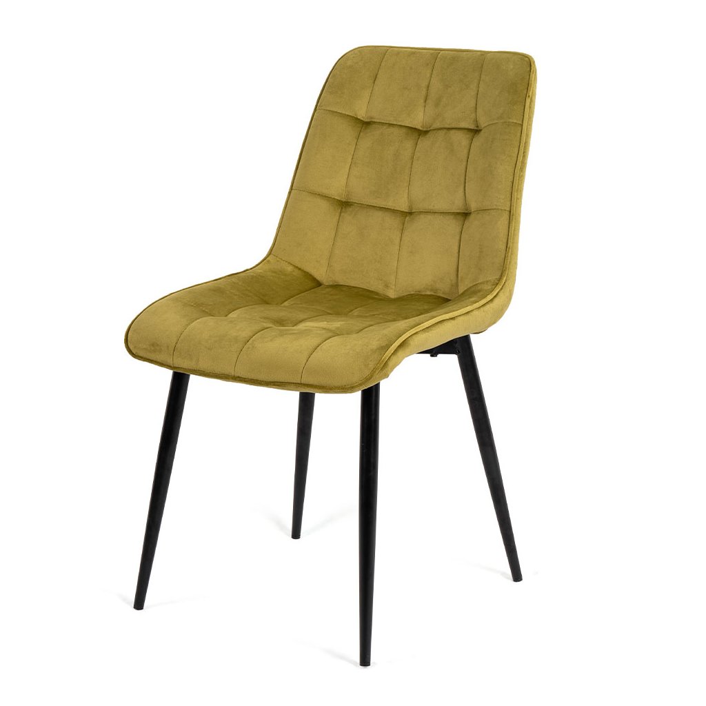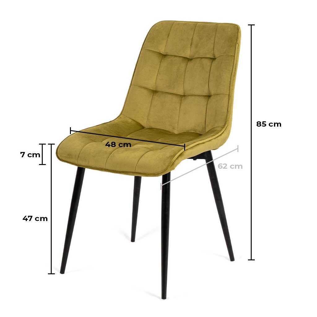 Stolička je vyrobená z najkvalitnejších materiálov. Sedák a operadlo sú potiahnuté zamatovou látkou. Stolička má pevné kovové nohy s práškovým nástrekom v čiernej farbe, ktoré dodajú jedinečný efekt v každom interiéri. Nohy majú ochranu proti poškodeniu podláh.