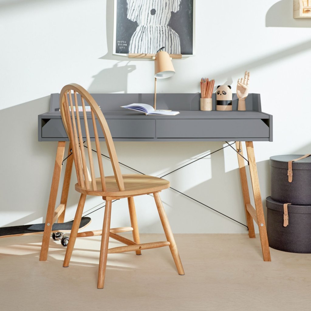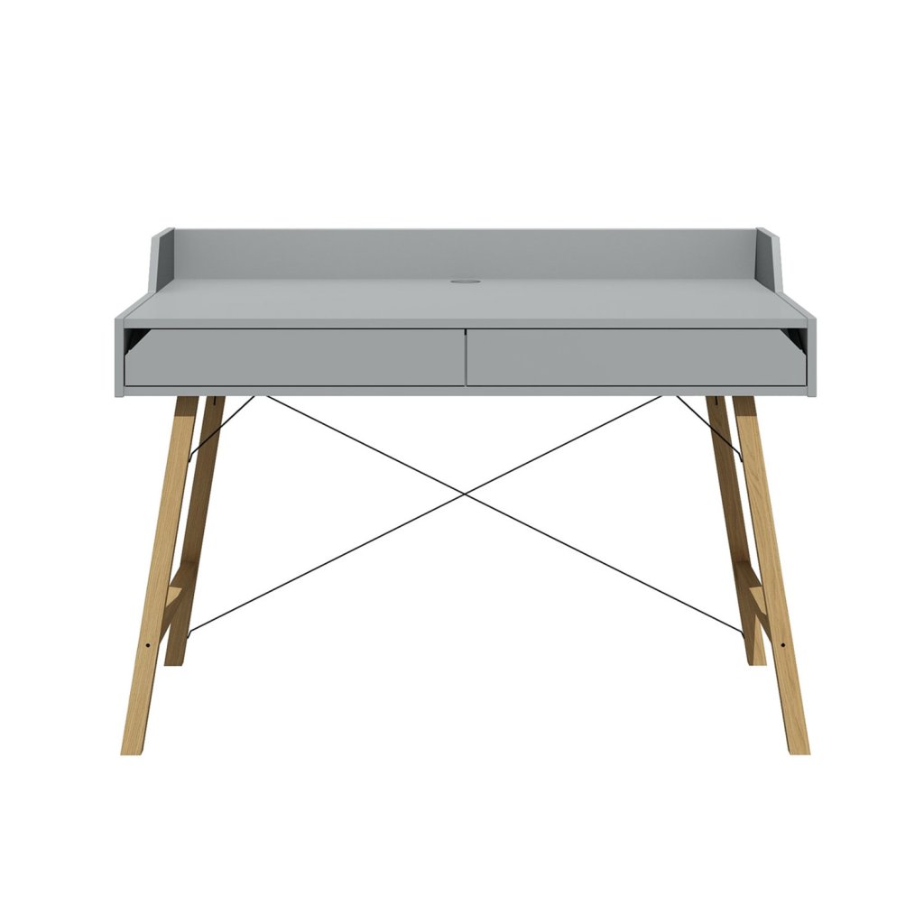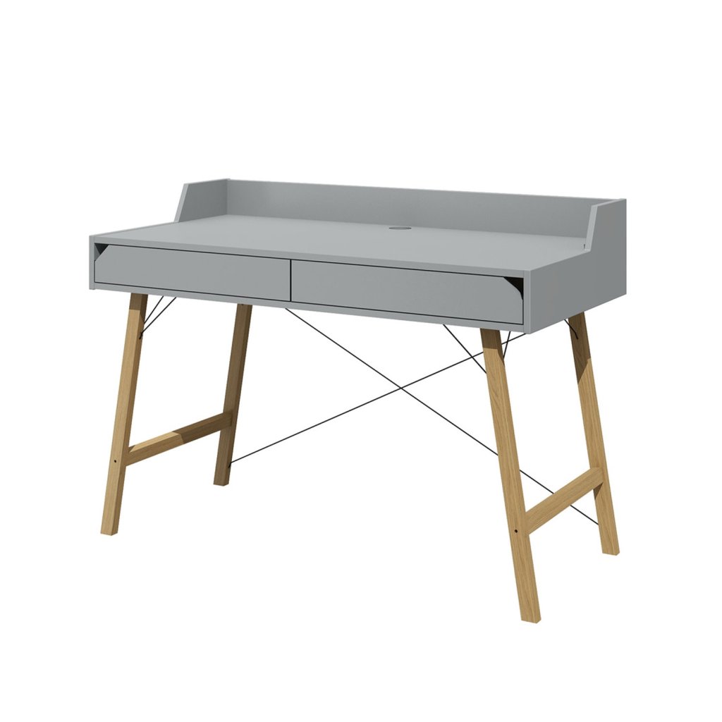 Pracovný stôl bol navrhnutý s dôkladnou pozornosťou venovanou detailom, jednoduchou formou s minimalistickým dizajnom. Má dve priestranné zásuvky, zvýšenú hranu pracovnej plochy a otvor pre umiestnenie kábla, vďaka ktorému budete môcť udržiavať usporiadaný pracovný stôl a vyhnúť sa káblovému chaosu.