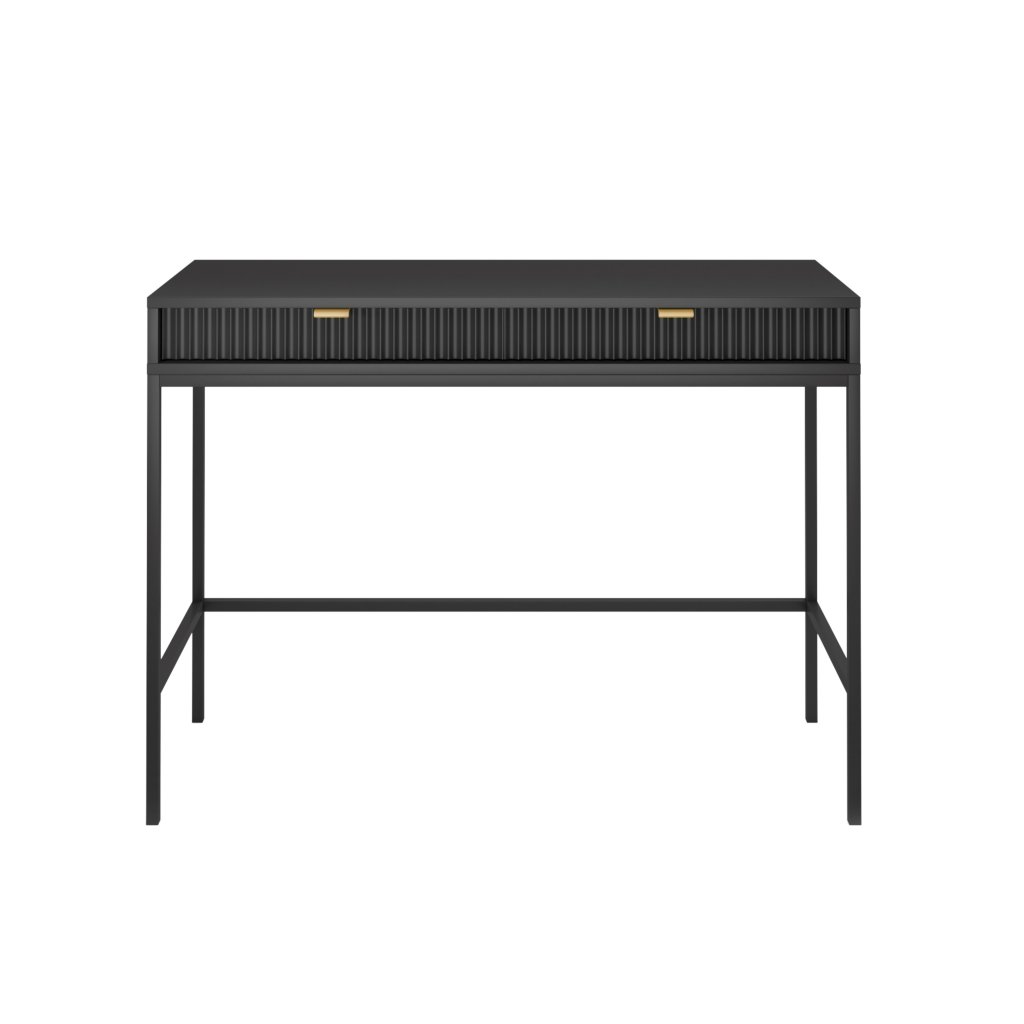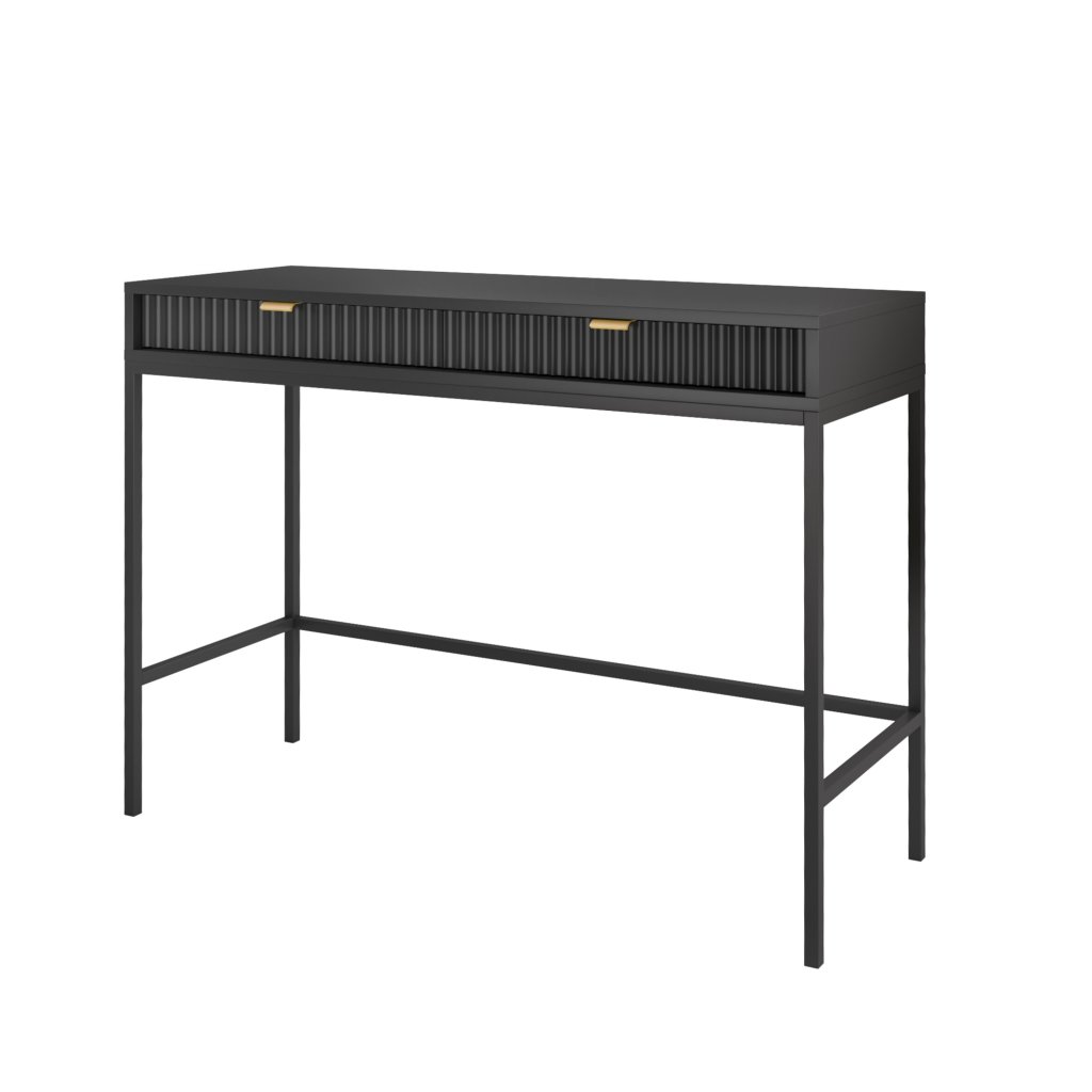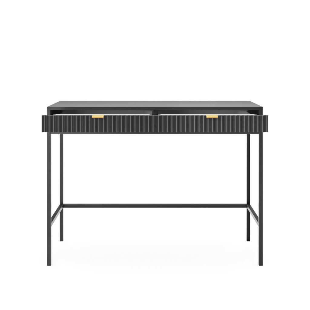 Toaletný stolík zo série nábytku NOVA vyniká svojimi zlatými detailami, ktoré jej pridávajú na elegancii. Do vašej obývacej izby prinesie dostatok úložného priestoru a za zmienku stojí aj to, že stojí na vysokých nohách, čo vám zjednoduší údržbu podláh. Stolík má praktické rozmery.