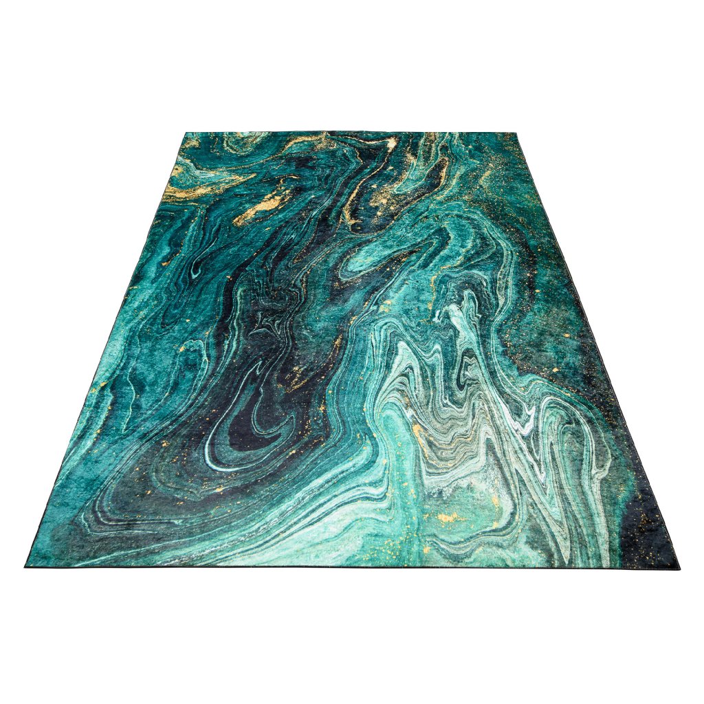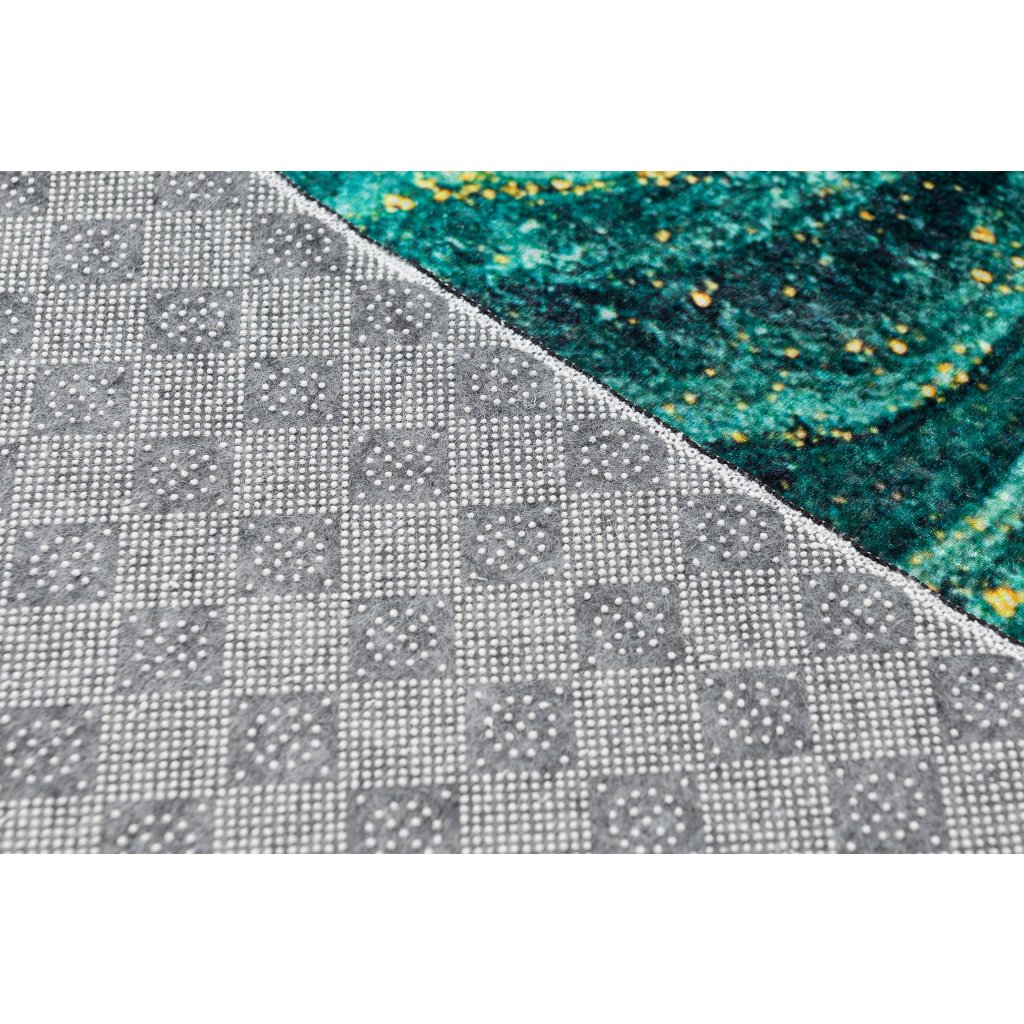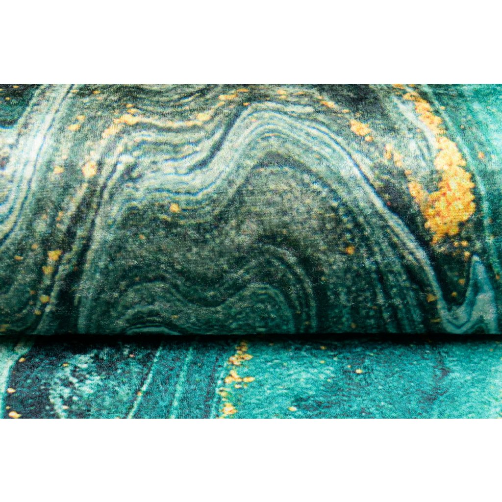 Kombinácia smaragdovej a zlatej je hitom sezóny, čiže ak zháňate do svojej obývačky niečo v týchto farbách, vaše hľadanie práve skončilo. Dizajnový koberec TAYLOR vás zaujme už na prvý pohľad svojou jednoduchosťou, no zároveň nadčasovosťou. Výhodou tohto modelu je materiál, z ktorého je vyrobený, pretože jeho údržba nestojí veľa času.